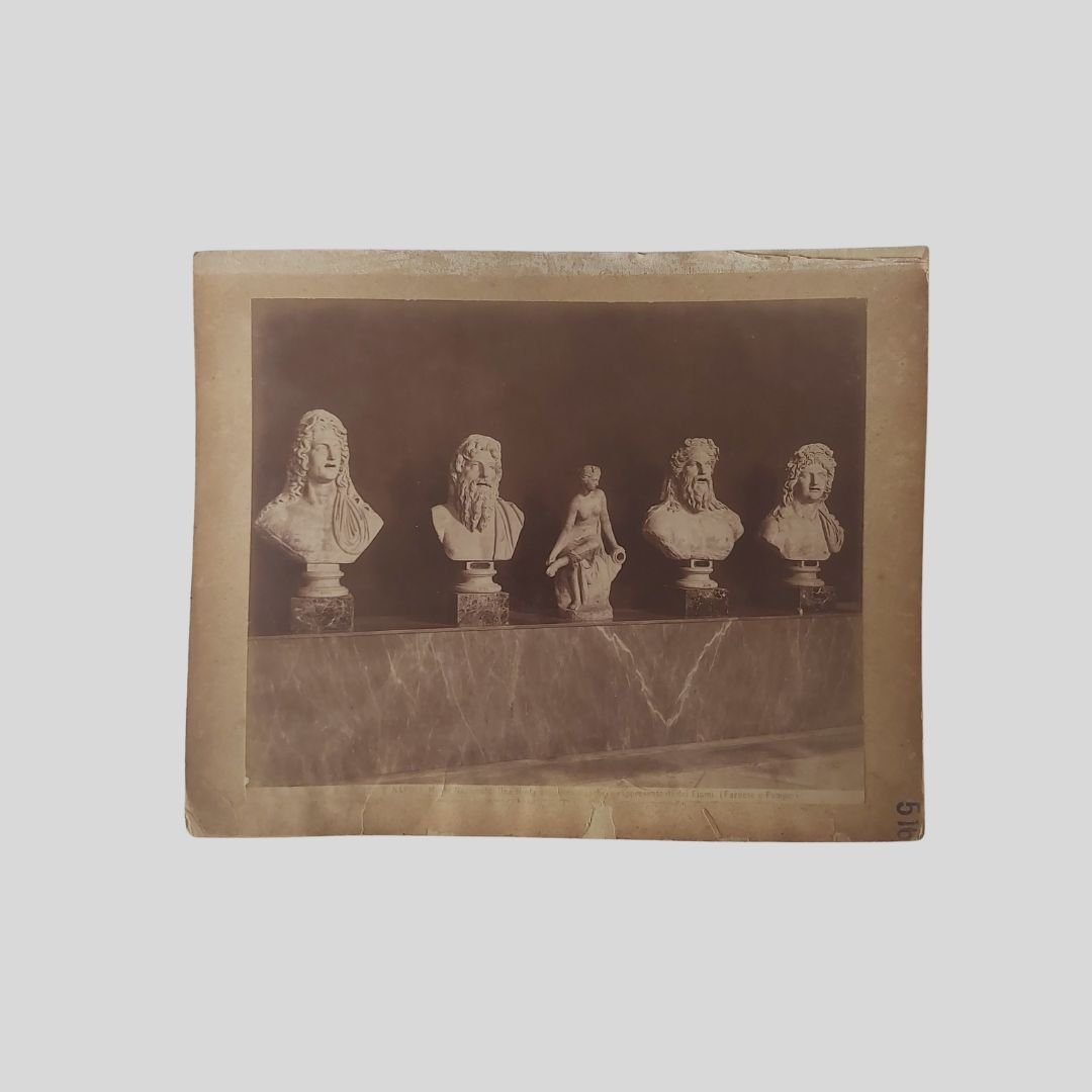 Due fotografie originali all’albumina, applicate al recto/verso di cartoncino dell’epoca, 1880 ca., cm 20,2×25,3 più supporto. Didascalie stampate su lastra con codici editoriali. Supporto lievemente ondulato. In buone condizioni. Giacomo Brogi: due fotografie originali all’albumina raffiguranti Busti del Museo Archeologico Nazionale di Napoli. Didascalia codice n. 12567: Napoli. Museo Nazionale. Cippo coi ritratti di M. Antonio Trofino e di sua moglie Giulia Irene (Pozzuoli). Didascalia codice n.12833: Napoli. Museo Nazionale. Una Ninfa e quattro maschere rappresentanti dei Fiumi (Farnese e Pompei). Giacomo Brogi [Firenze, 1822-1881]. È stato uno dei più importanti fotografi ed editori italiani del XIX secolo. Iniziò la sua carriera come incisore prima di dedicarsi alla fotografia. Nel 1859 aprì a Firenze la ditta “Giacomo Brogi fotografo”. Lo studio ebbe diverse sedi prestigiose a Firenze, tra cui Lung’Arno delle Grazie e Corso Tintori. Sotto la sua guida, l’azienda divenne un punto di riferimento internazionale, con succursali anche a Roma e Napoli (dopo il 1870). Documentò sistematicamente il patrimonio artistico e paesaggistico dell’Italia post-unitaria. Nel 1878 la sua fama è tale da venire nominato “fotografo del re”.