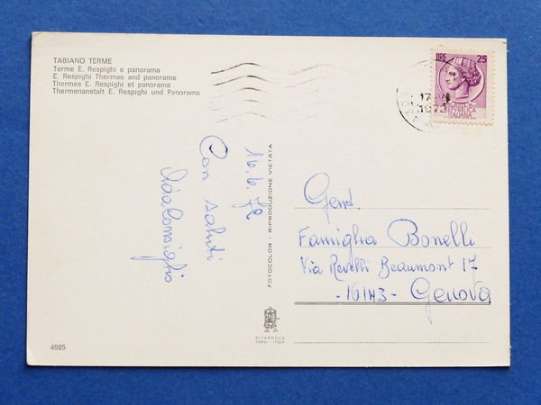 Cartolina Tabiano Terme - Terme E. Respighi e panorama - 1972 1972 Cartolina formato grande - viaggiata Condizioni buone, come da foto Per appassionati, studiosi e collezionisti