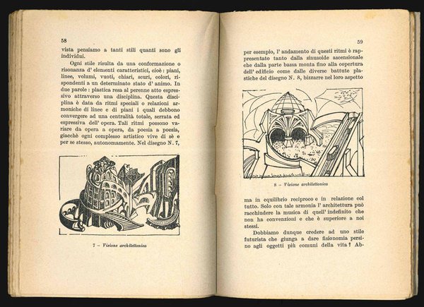 LIBRORara edizione originale.Velatura professionale di rinforzo al dorso, ben riuscita; per il resto ottimo esemplare.Prima pubblicazione dell'autore e primo libro a fregiarsi dell’ambizioso titolo - lo stesso del mitico Sant’Elia. Saggio corredato di 27 disegni architettonici dell’autore nel testo.Cammarota, Futurismo, 300.1; Salaris, Bibliografia, p. 44b