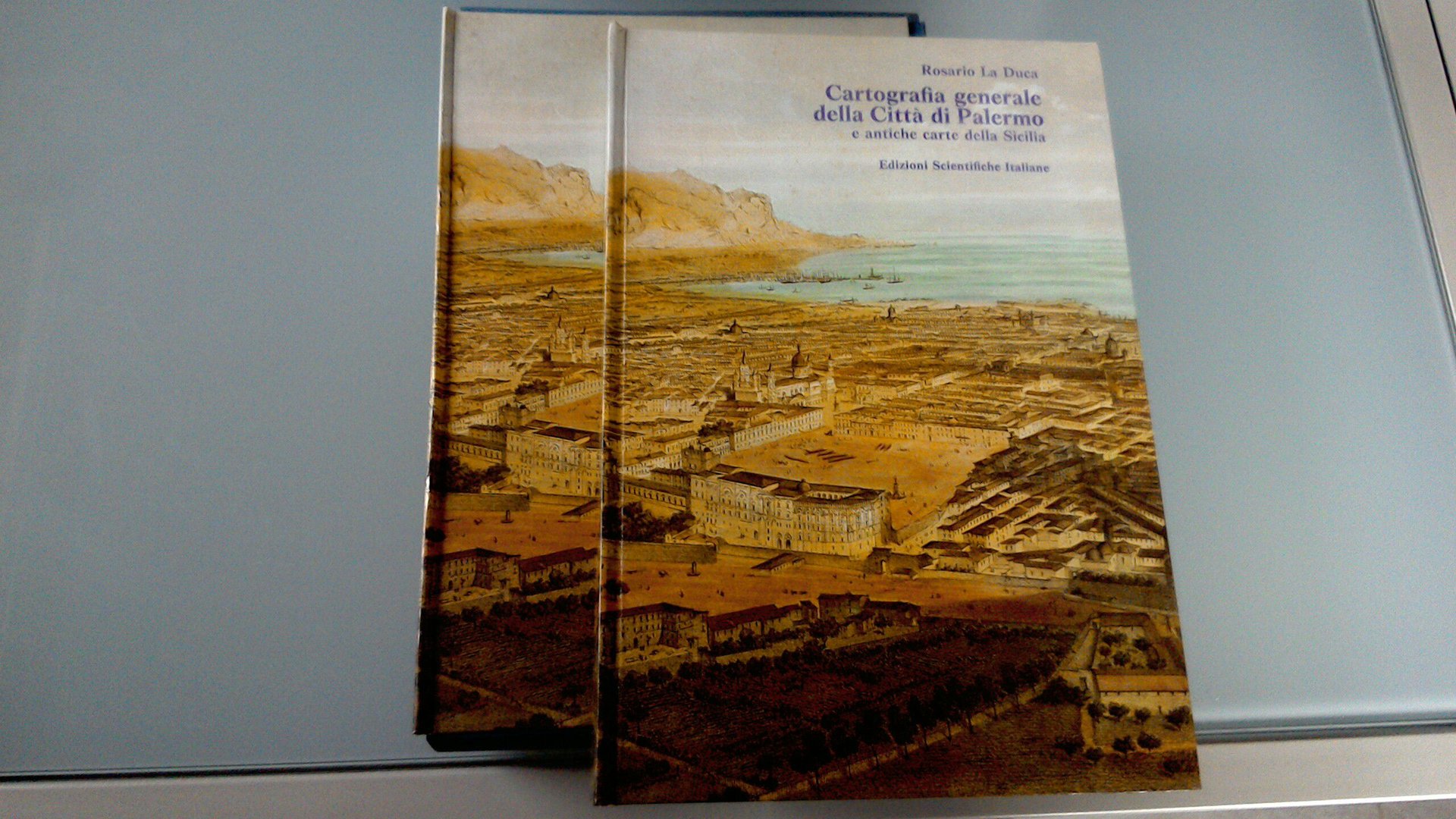 Raccolta di materiale cartografico relativo alla città di Palermo, comprese vedute prospettiche e panoramiche. Il volume comprende anche uno studio sul volto della Sicilia attraverso antiche carte dell'isola ed opere geografiche.