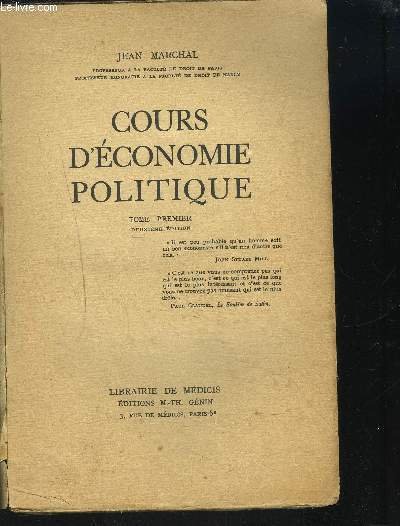 COURS D ECONOMIE POLITIQUE / TOME 1ER / 2EME EDITION