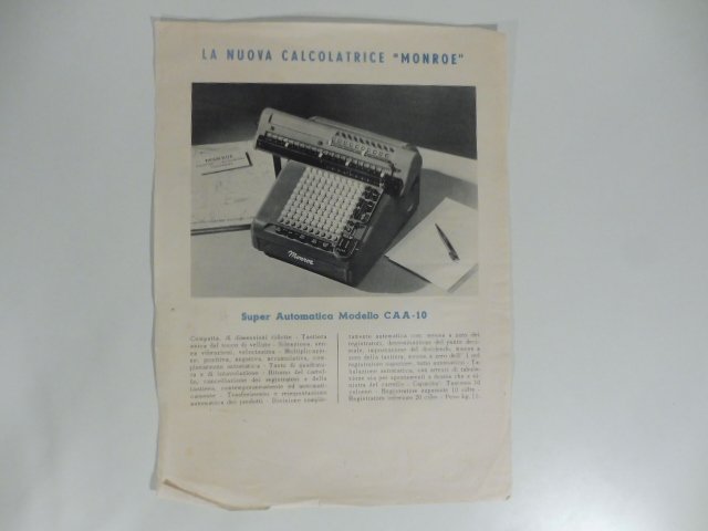 La nuova calcolatrice Monroe super automatica modello CAA-10. Foglio pubblicitario