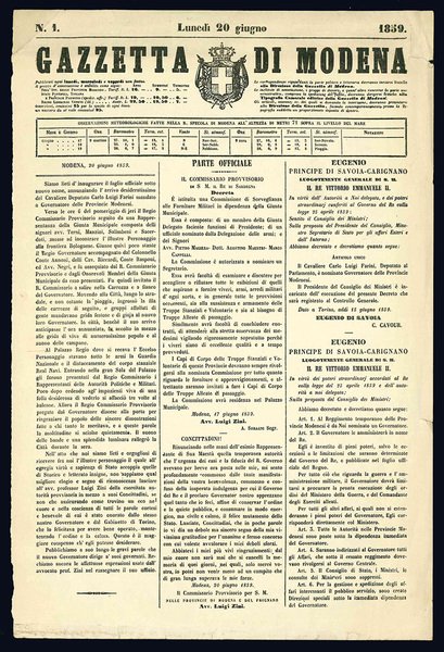 Si offre insieme una riproduzione anastatica del nr. I della Gazzetta di Modena. Bella copia intonsa e ancora a fogli chiusi.