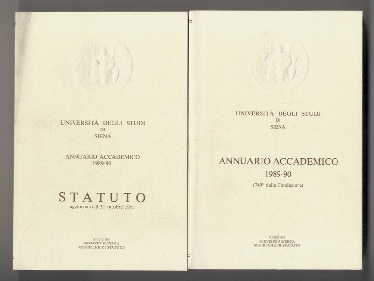[1:] Annuario accademico 1989-90. [2:] Statuto, aggiornato al 31 ottobre 1991. A cura del Servizio Ricerca Modifiche di Statuto.