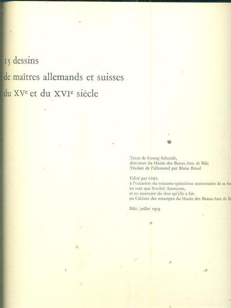 15 dessins de maitres allemands et suisses du XV et du XVI siecle