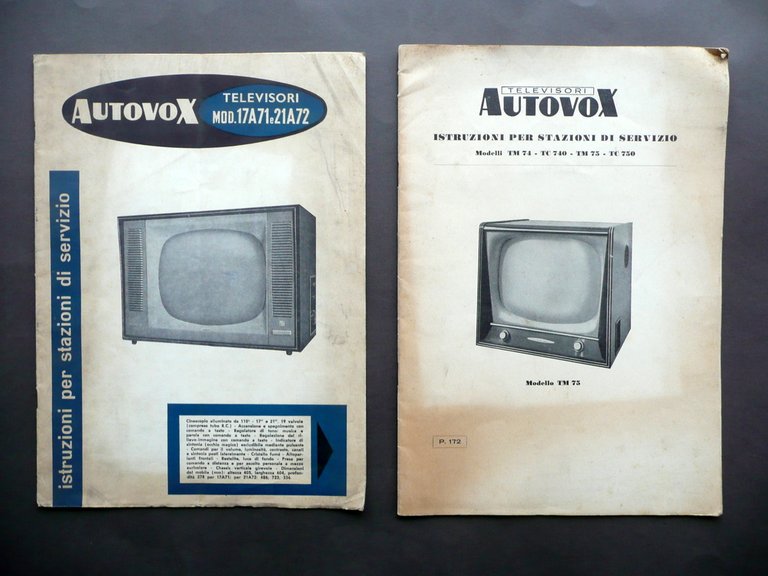 2 Fascicoli Televisori Autovox Istruzioni Stazioni di Servizio 1955 1959