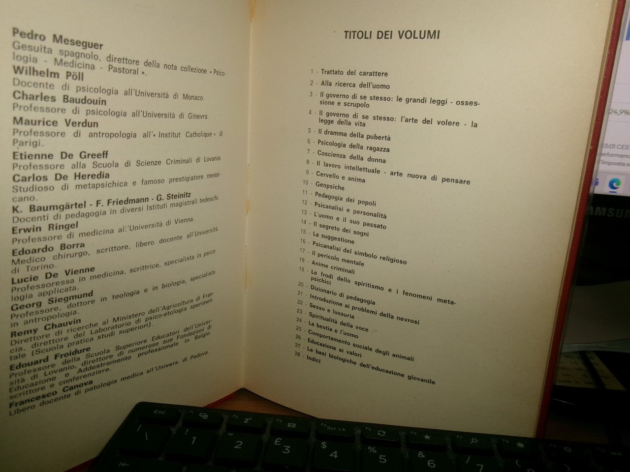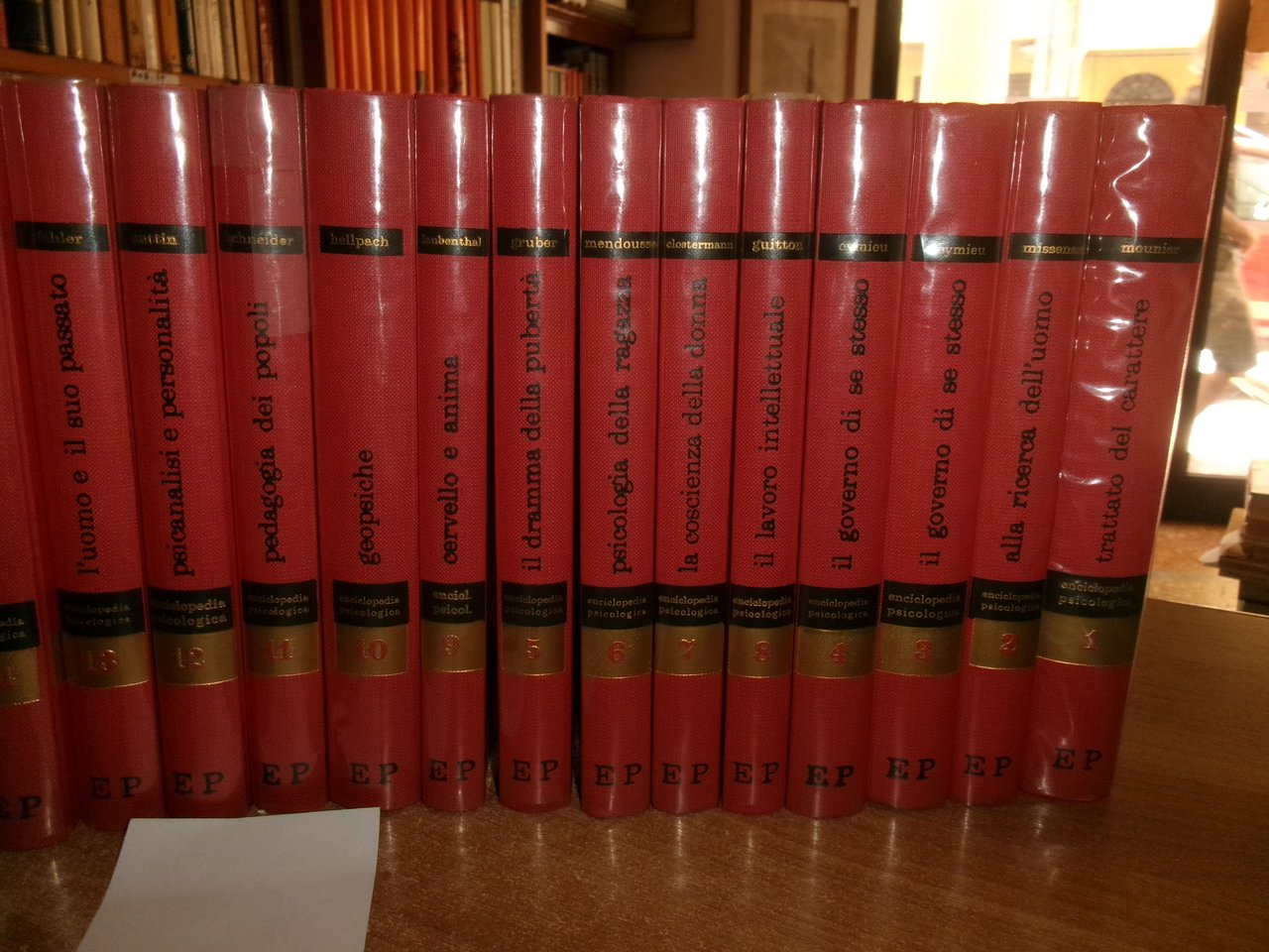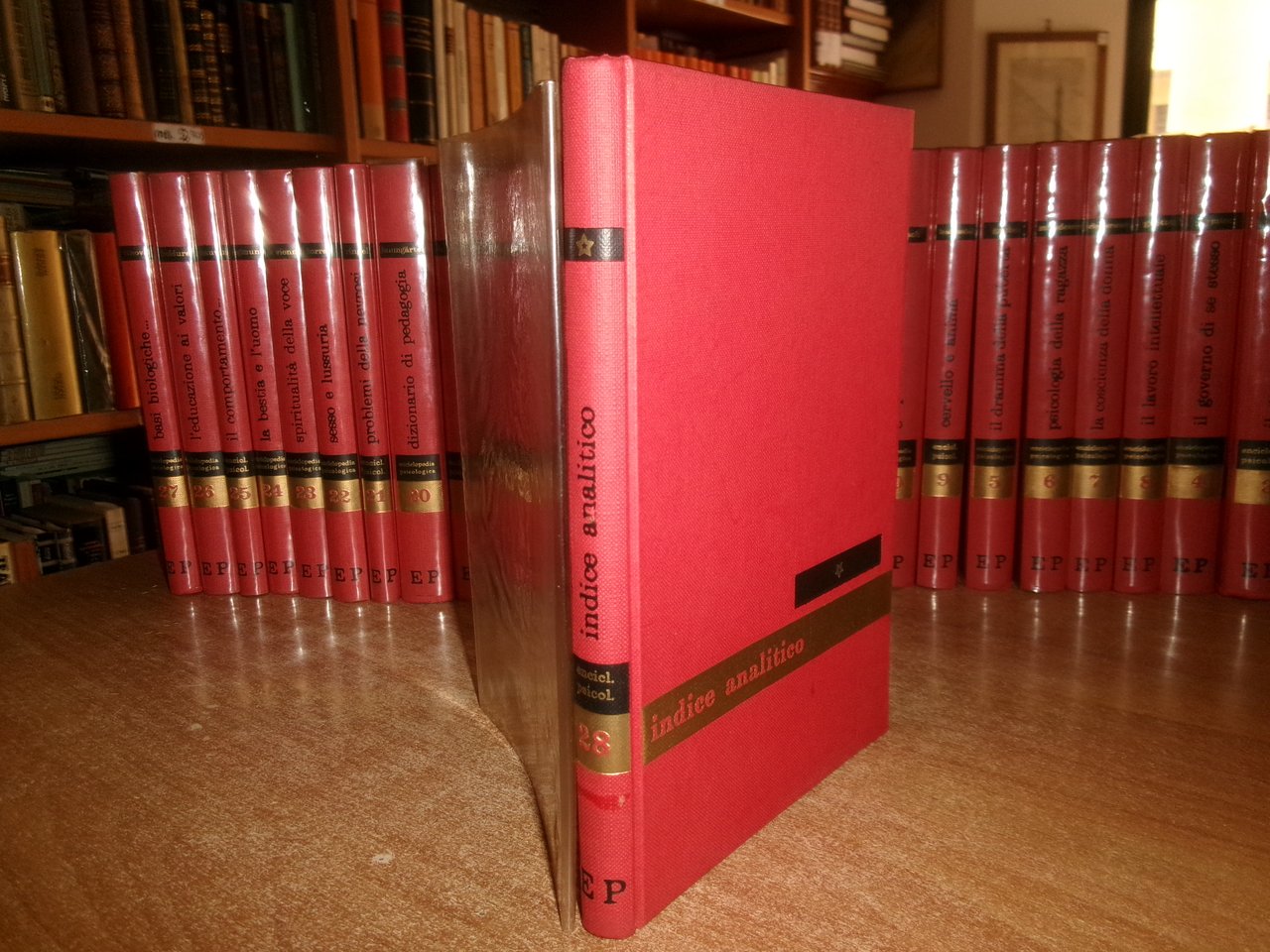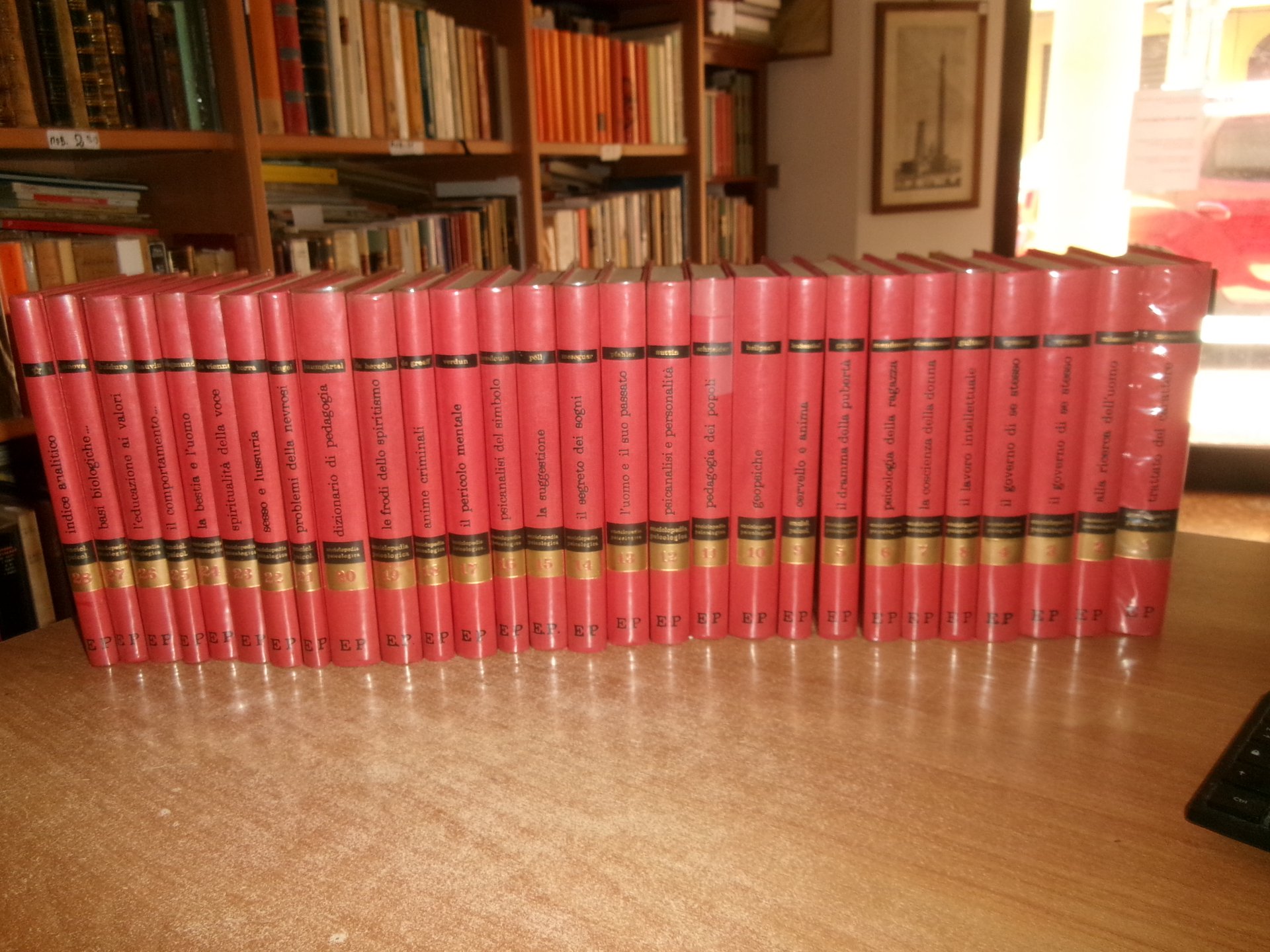 28 volumi - V. GAMBI. L. GALATI. C. DANNA. Enciclopedia Psicologica. In-8°, tela rossa edit. con sovracopertine in acetato con titoli sui piani e ai dorsi. Opera completa con tagli leggermente ingialliti ma ottimamente conservati. Titoli libri in foto. Uff. scat. stanzetta.