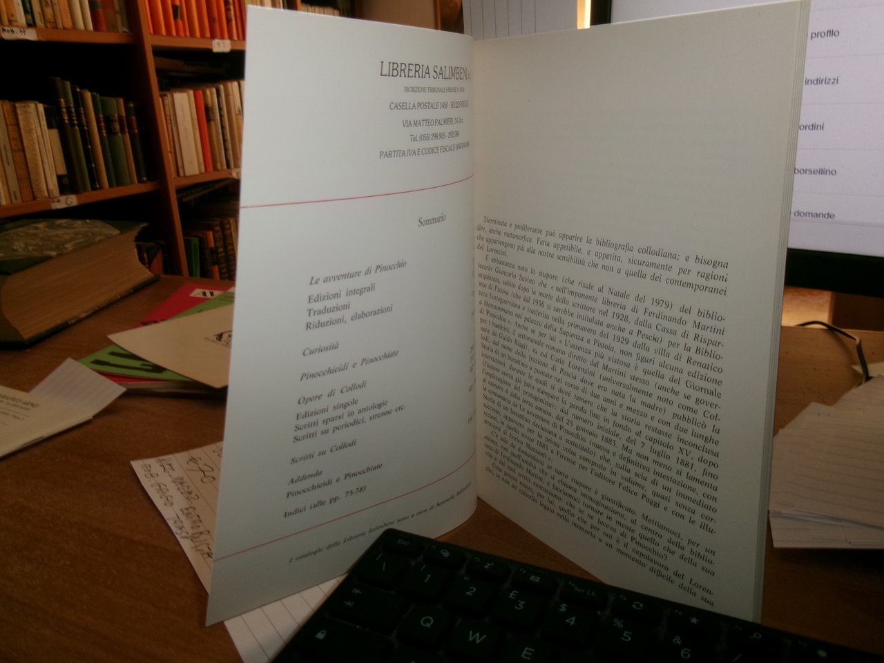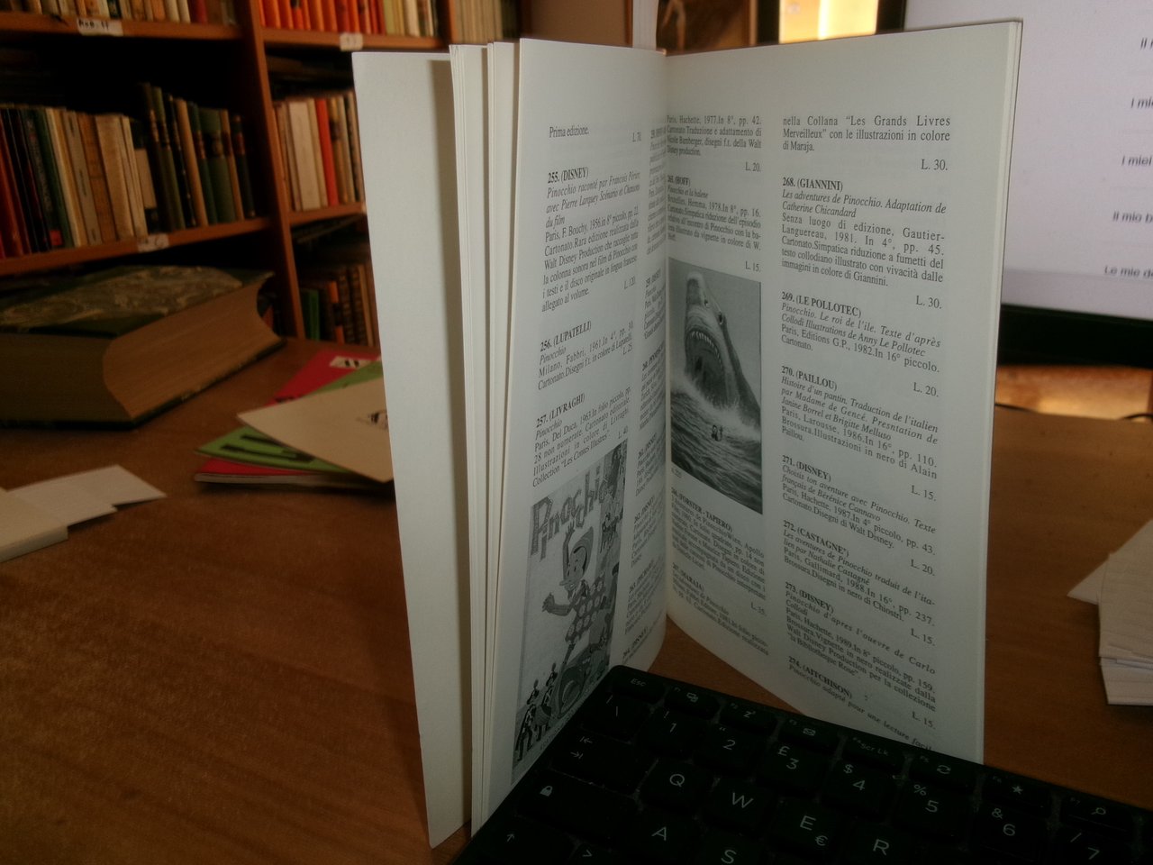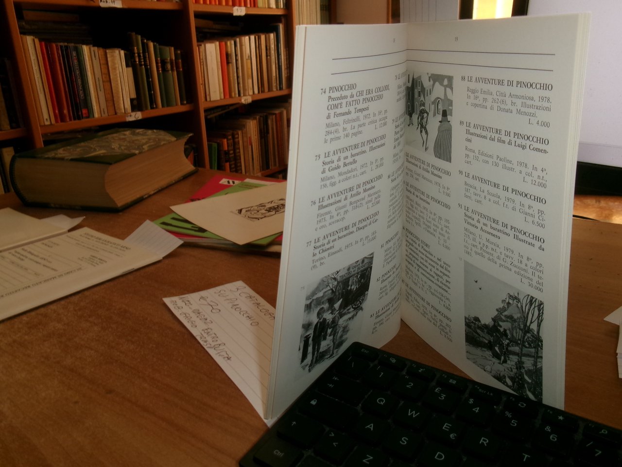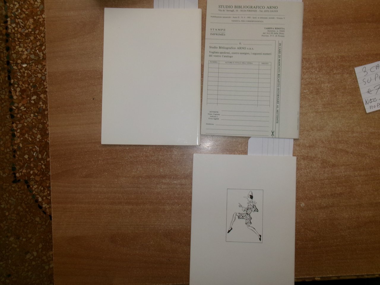 3 Cataloghi. COLLODI da COLLODI, su COLLODI. PINOCCHIO. In-8°, br. edit. Firenze, Libreria Salimbeni, Libreria Catalogo 63. 78 pp. con numerose illustrazioni n.t. con prezzi in lire.; PINOCCHIO di Sonia Natale, Roma, 1996. Descrizione di 443 libri con numerose illustrazioni n.t. e prezzi in lire.; Catalogo n. 4. PINOCCHIO. Firenze, Studio Bibliografico Arno, Autunno 1993. 65 pp. con prezzi in lire. Neg. magazz. mob. grigio entro busta trasp.