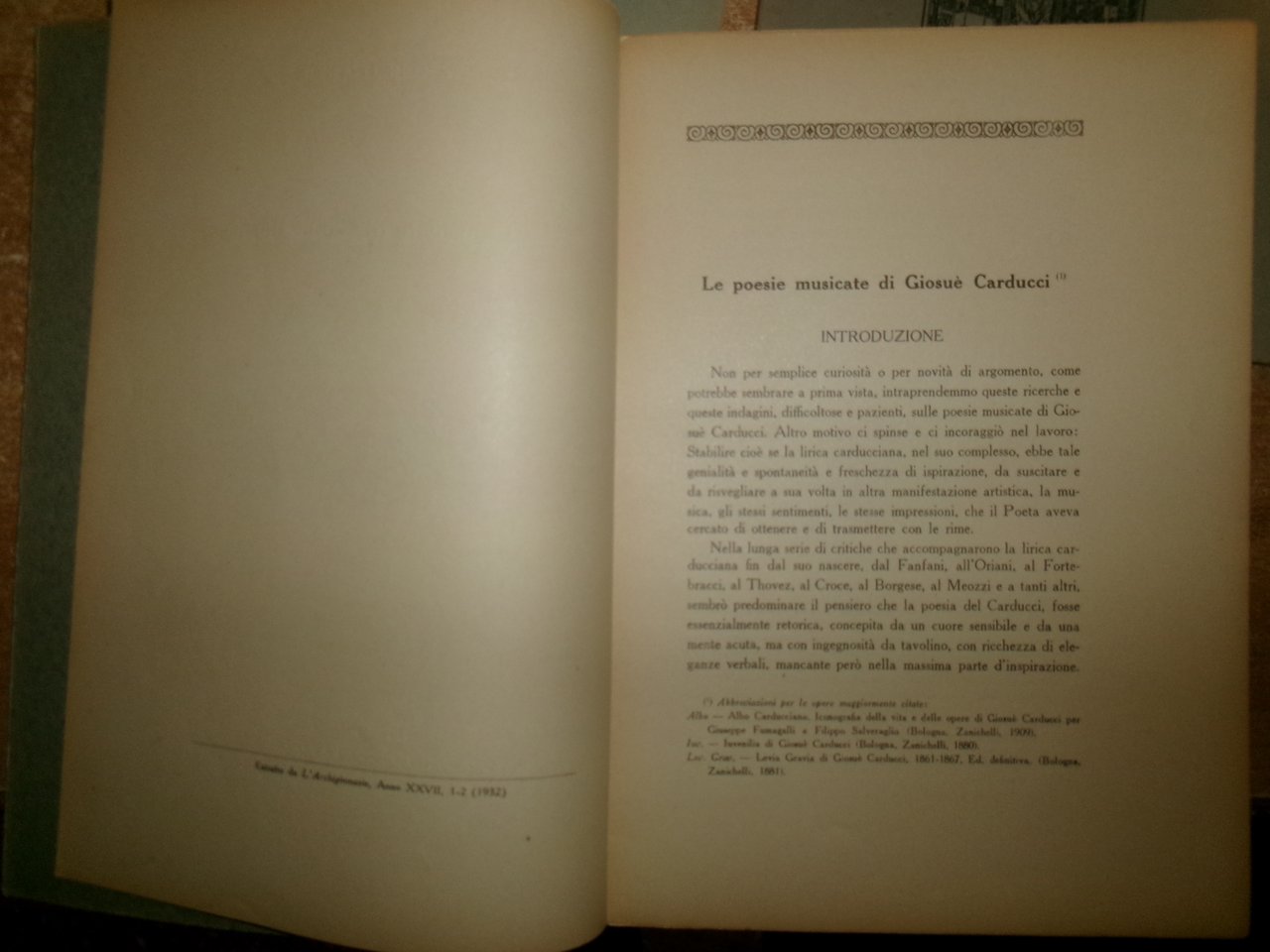 3 opuscoli: Le Poesie musicate di Giosuè Carducci. Bibliografia degli scritti...