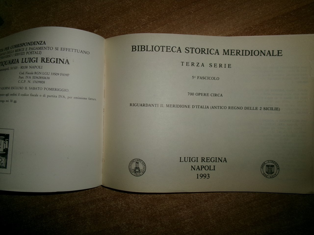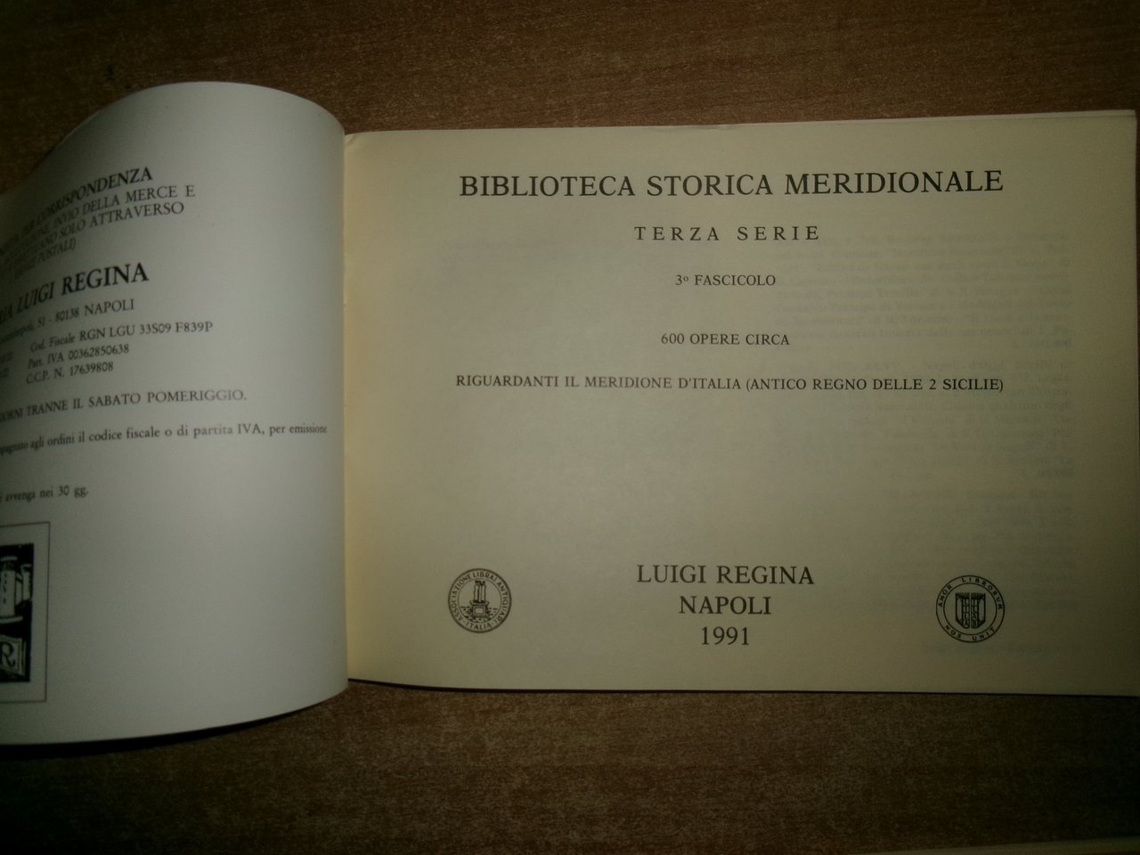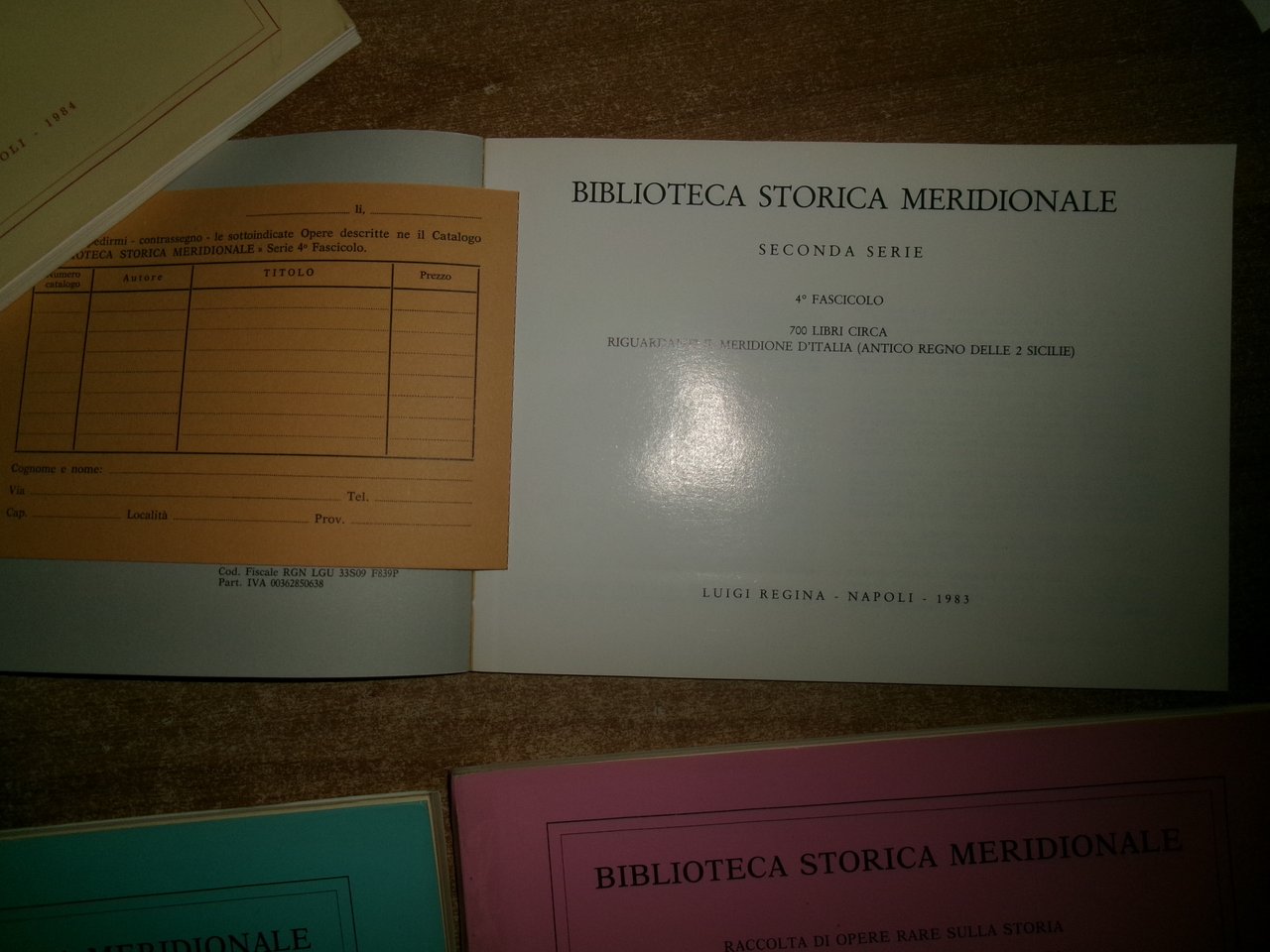6 cataloghi BIBLIOTECA STORICA MERIDIONALE. Raccolta di opere rare..Luigi Regina