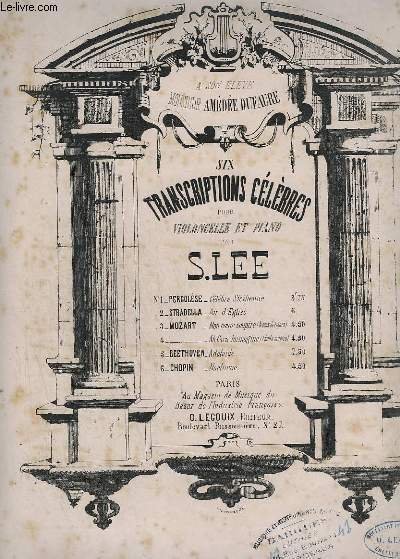 6 TRANSCRIPTIONS CELEBRES POUR VIOLONCELLE ET PIANO - N° 1 : CELEBRE SICILIENNE. | Libri antichi e moderni | Lee S.