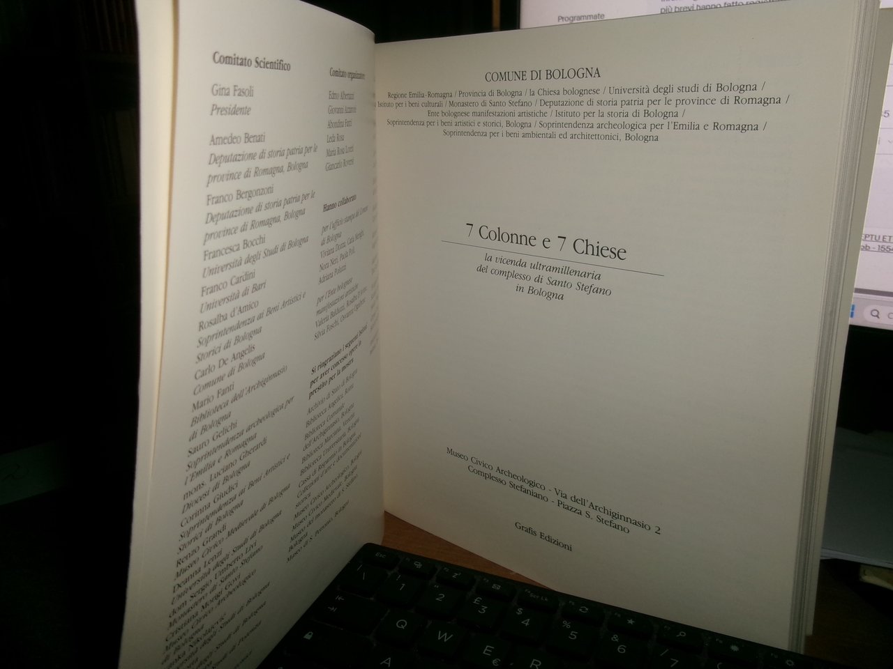 (Bologna) 7 COLONNE & 7 CHIESE, GRAFIS EDIZIONI, 1987. La vicenda ultramillenaria del Complesso di Santo Stefano di Bologna. In-8° quadrato, br. edit. 255, (2) pp. con numerose illustrazioni anche a colori n.t. Ottimo stato di conservazione/come nuovo. Neg. mob. 12