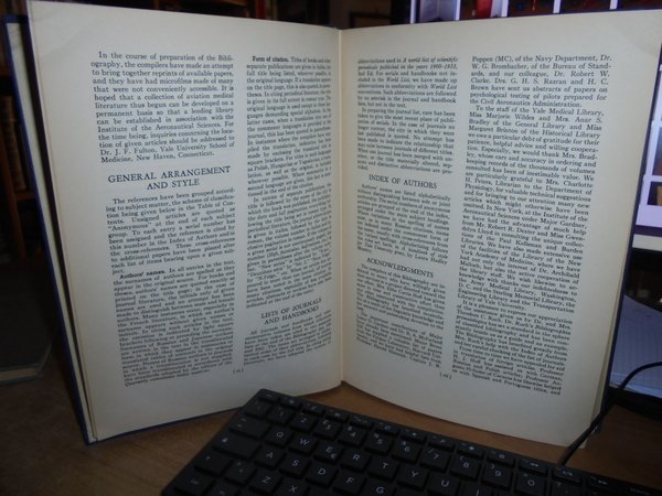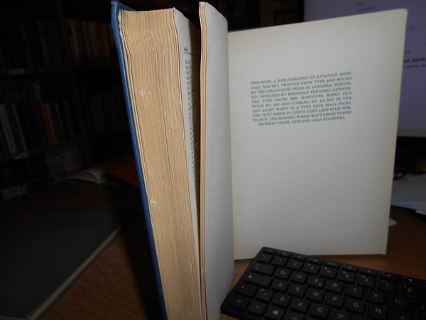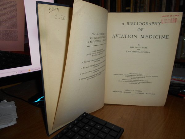 EBBE CURTIS HOFF and JOHN FARQUHAR FULTON - PHEBE MARGARET HOFF. A Bibliography of Aviation Medicine + Supplement. Springfield - Illinois - Baltimore - Maryland, Charles C Thomas, 1942 1944. 2 volumi in-8° grande, tela edit. con titoli in oro (non visibile alla base del volume I.). xv, 237 pp.; xiv, 109 pp. Volumi in buono stato di conservazione. Uff. C - IV - 1
