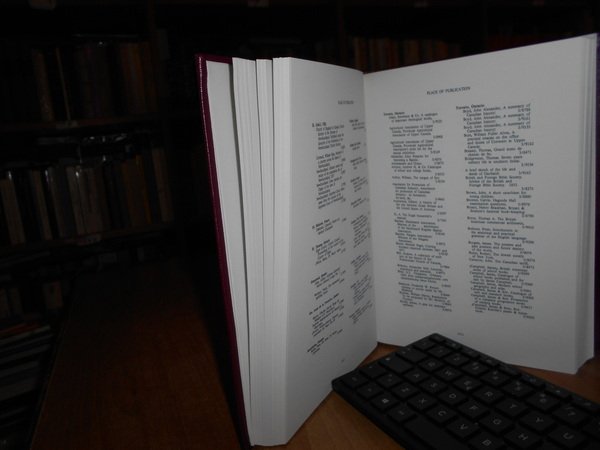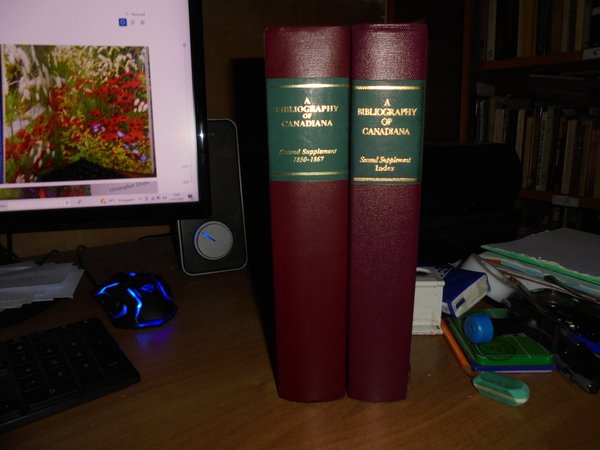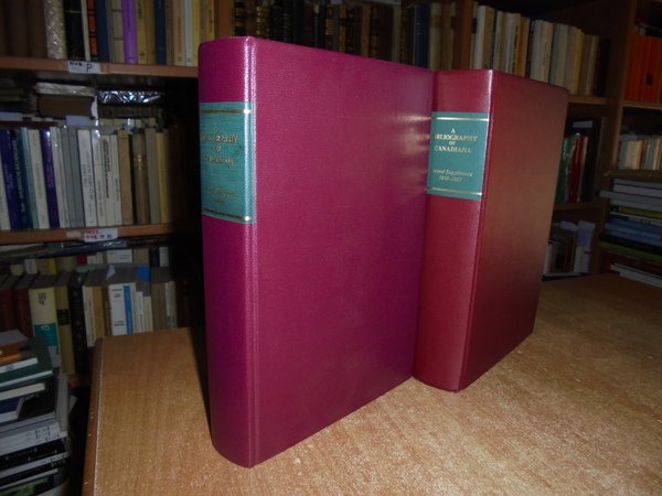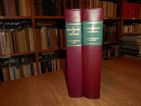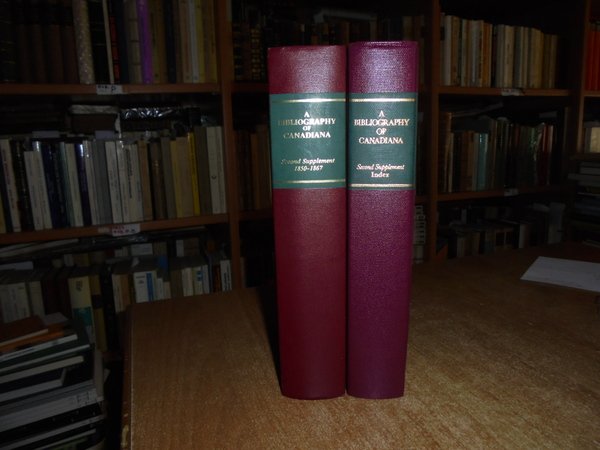 Edited by Sandra Alston, assisted by Karen Evans. Toronto, Metropolitan Toronto Library Board. 1986 - 1989. A Bibliography of Canadiana. Being items in the metropolitan Toronto Library relating to the early History and development of Canada. Second supplement volume 3 1850-1867. Volume 4 Index. 2 volumi in-8°, tela edit. bordeaux con titoli in oro ai dorsi. 910 pp. con alcune tavole n.t.; 777 pp. Come nuovi. Uff. B - II - 6 - 2