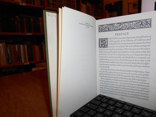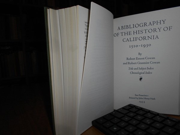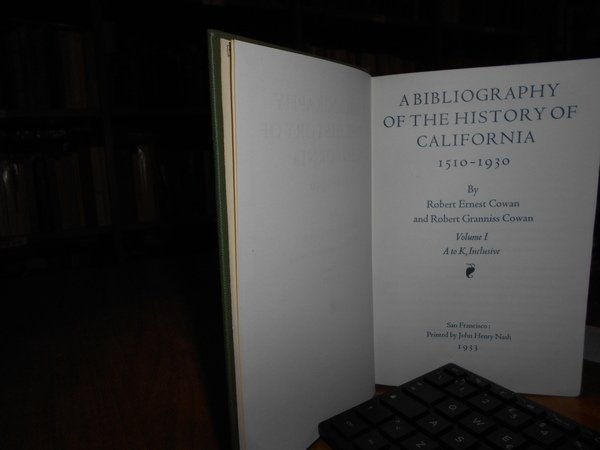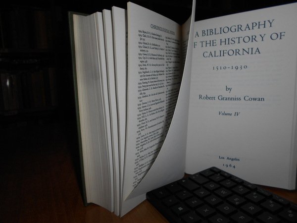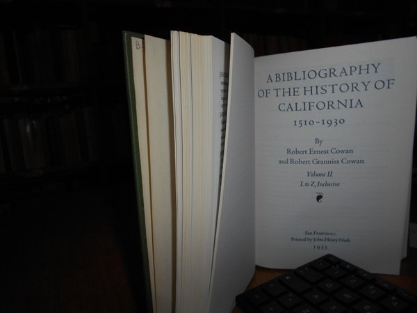 ROBERT ERNEST COWAN and ROBERT GRANNIS COWAN. San Francisco, Printed by John Henry Nash, 1964. A Bibliography of the History of California 1510-1930. IV volumi in uno in-8°, tela verde con titolo al dorso. (V), 926 pp. Come nuovo. Uff. B - I - 6