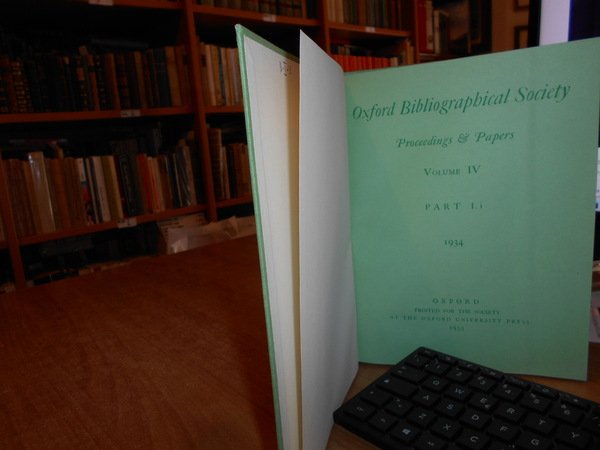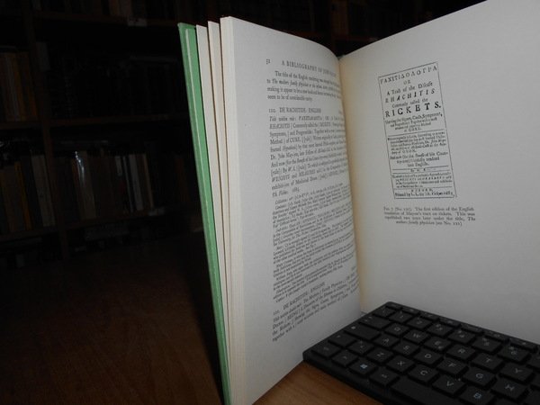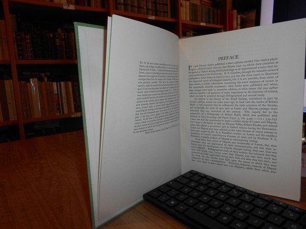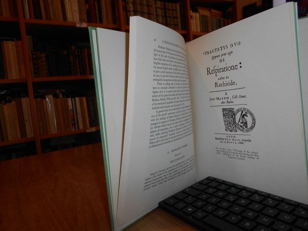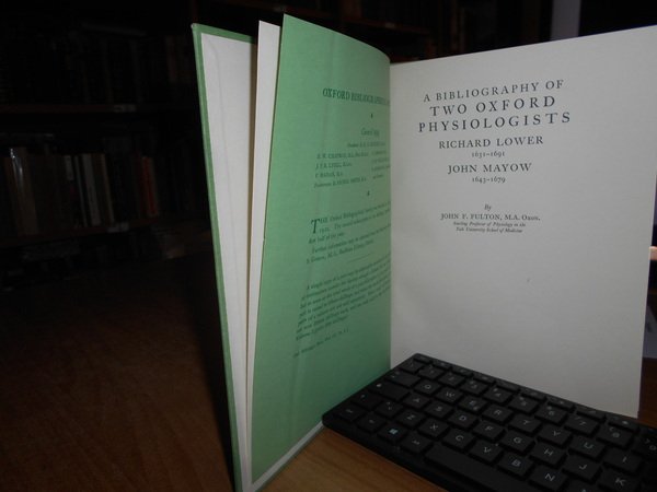 By John F. Fulton. Oxford. Printed for The Society at The Oxford University Press, 1935. A Bibliography of TWO OXFORD PHYSIOLOGISTS RICHARD LOWER 1631-1691. John Mayov 1643-1679. In-8° grande, tela verde con titolo in oro entro tassello al dorso, brossure originali conservate. 62 pp. con fas-simili f.t. Ottimo esemplare in legatura recente con le copertine originali conservate. Uff. D - II - 3