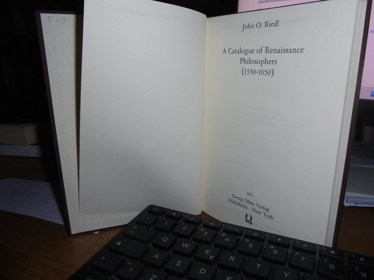 A CATALOGUE OF RENAISSANCE PHILOSOPHERS (1350-1650). JOHN O. RIEDL 1973