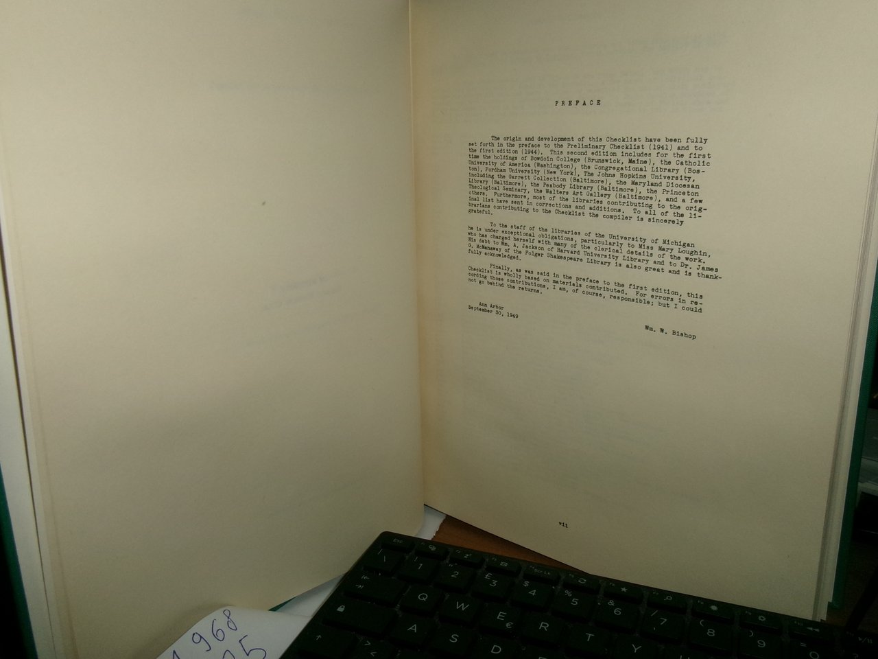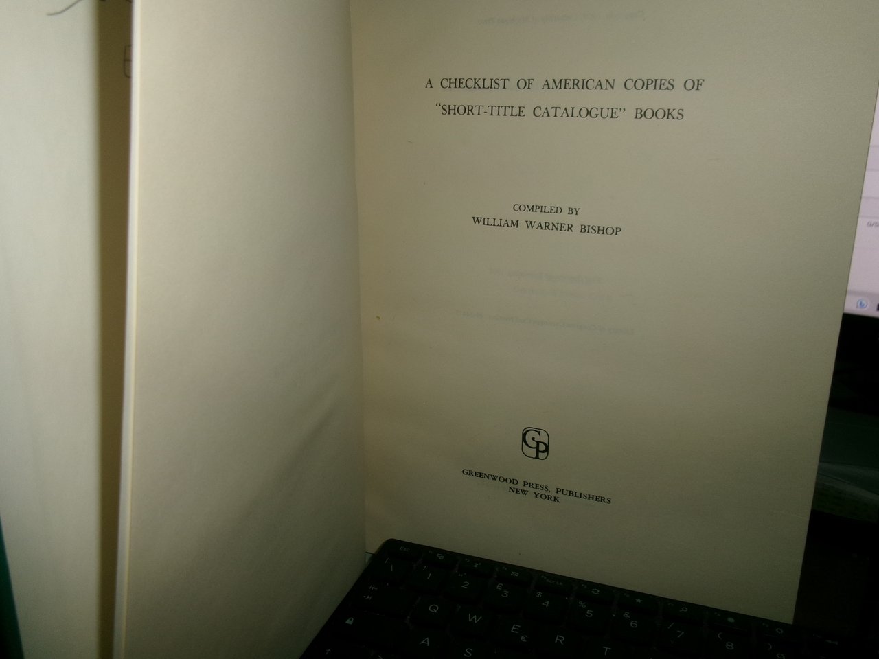 A CHECKLIST OF AMERICAN COPIES OF "SHORT-TITLE CATALOGUE" BOOKS. Bishop, William