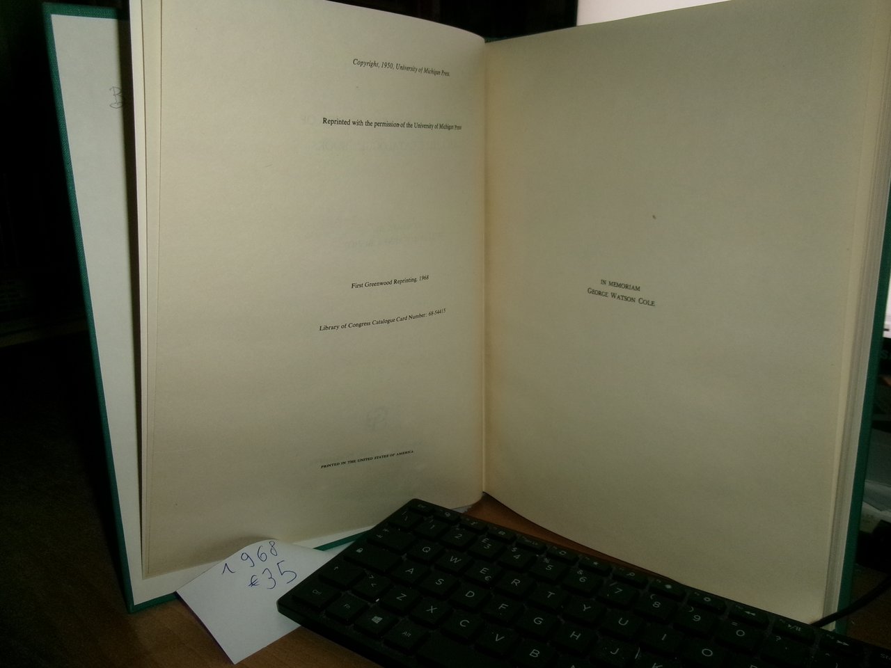 Bishop, William Warner (compiled by). New York: Greenwood Press, 1968. In-4°, tela edit. verde con titolo in oro al dorso. xi, 203 pp. In ottimo stato di conservazione con testo in inglese. Uff. E - IV - 6
