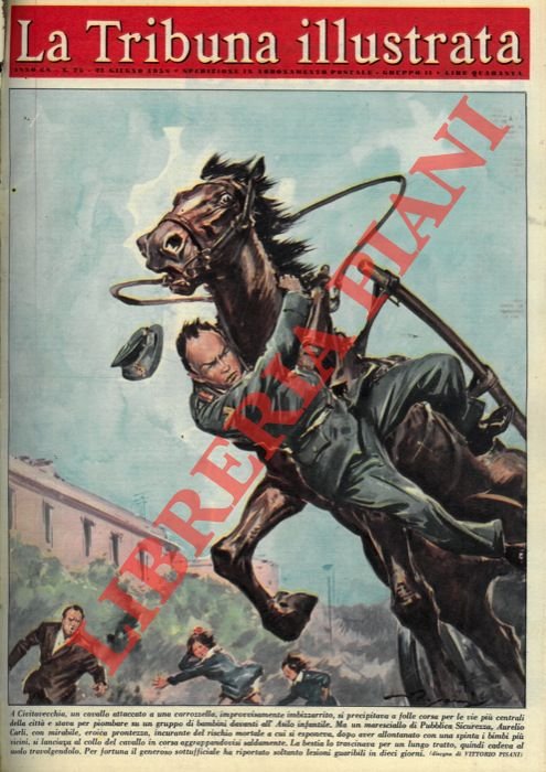 Roma, 1958 giugno 22, copertina illustrata a colori in fascicolo originale completo di pp. 32 de "La Tribuna illustrata" .