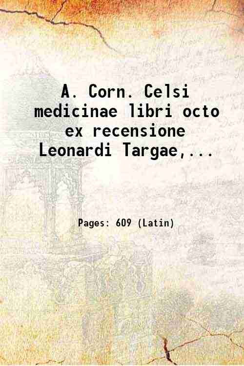 A. Corn. Celsi medicinae libri octo ex recensione Leonardi Targae,. 1769