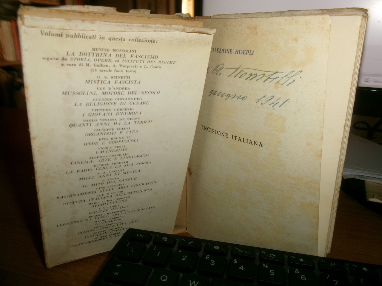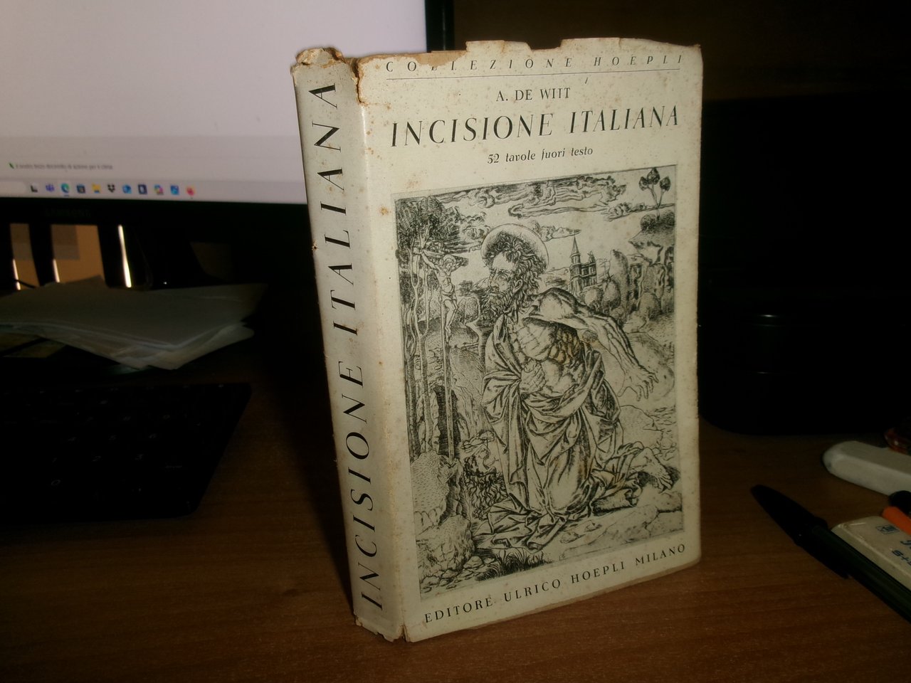 A. DE WITT. INCISIONE ITALIANA. Edizione originale. Milano, Editore Ulrico Hoepli, 1941. In-16°, br. edit. con sovracopertina. viii, 257 pp. con cinquantadue tavole fuori testo. Considerato in buono stato di conservazione perchè presenta strappetti e segni del tempo nella sovracopertina, con firma di ex possessore all' occhietto.