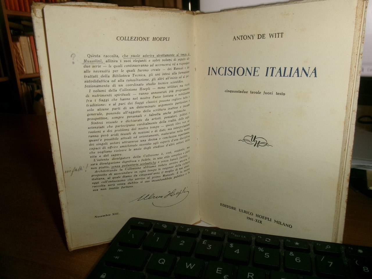 A. DE WITT. INCISIONE ITALIANA prima edizione Hoepli, 1941