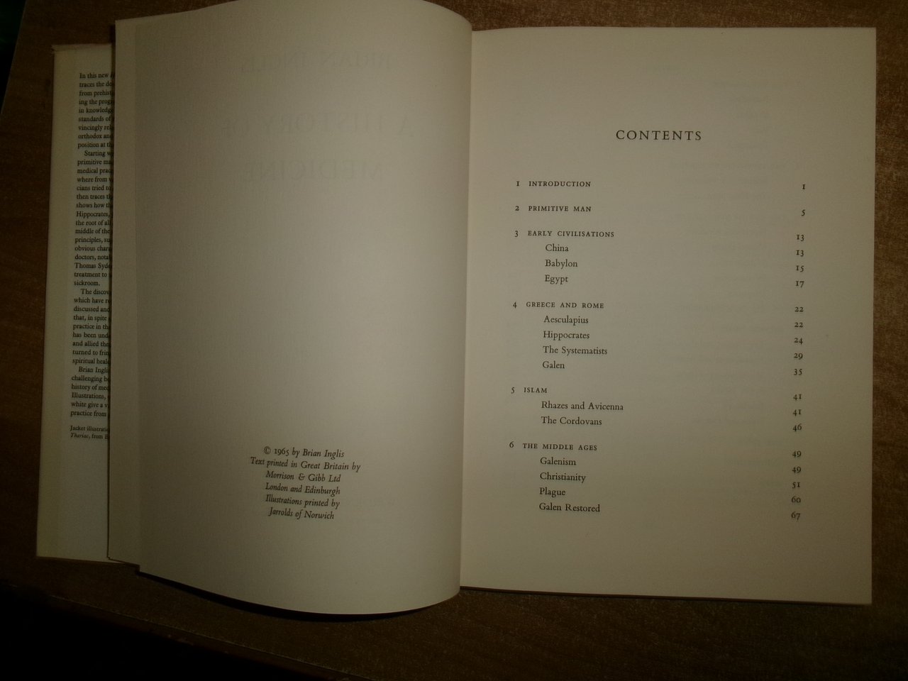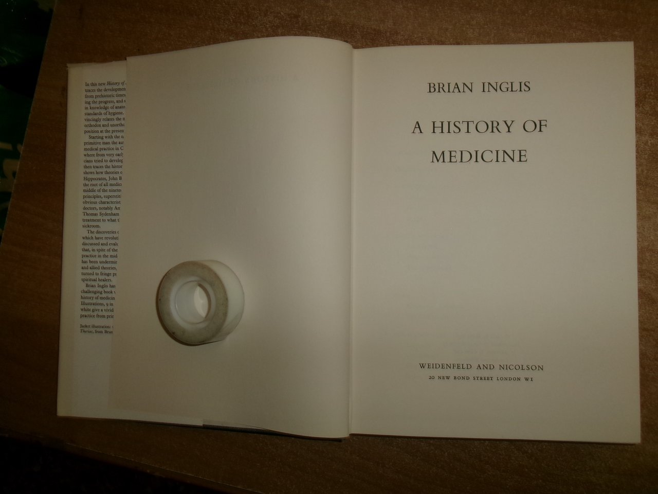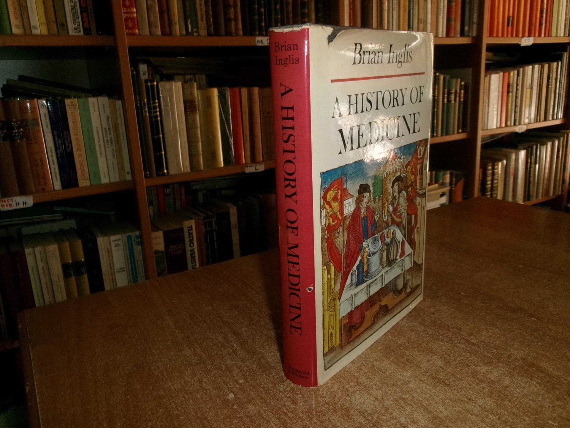 BRIAN INGLIS. London, Weidenfeld and Nicolson, 1965. A HISTHORY of MEDICINE. In-8°, tela grigia edit. con titolo in oro al dorso e sovracopertina ill. a col. xv, 196 pp. con numerose illustrazioni a colori e in bianco e nero in tavole f.t. Ottimo stato con due strappi nella sovracopertina (come da foto). Testo in inglese. Uff. stanzetta a sinistra I - 5