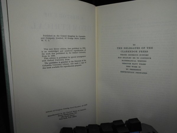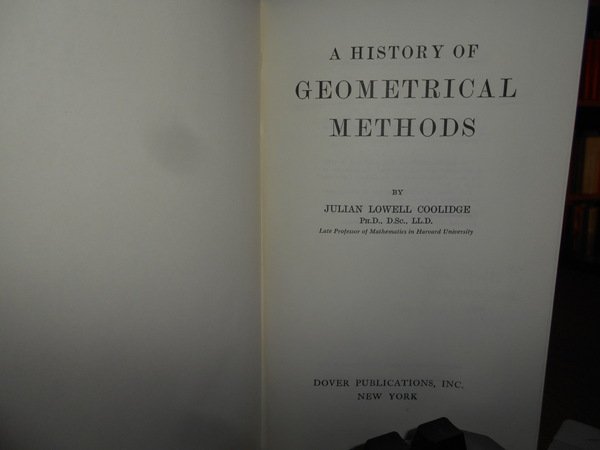 JULIAN LOWELL COOLIDGE. New York, Dover Publications, 1963. A History of GEOMETRICAL METHODS. In-8°, tela verde con titolo in oro entro tassello al dorso. xviii, 451 pp. Come nuovo. Uff. C - I - 6