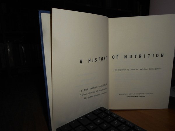 McCollum. Boston, Houghton Mifflin Company, The Ridenside Press, 1957. A History of Nutrition. The Sequence of ideas in nutrition investigations. In-8°, tela bleu, con titolo sul piano e al dorso. x, 451 pp. Come nuovo. Uff. C - IV - 4 - 2