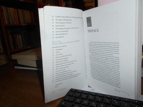 A History of the Jewish Experience: Book One, Torah and History, Book Two Torah, Mitzvot, and Jewish Thought. In-8°, br. xx, 561 pp. con numertose illustrazioni in bianco e nero n.t. Ottimo stato. Uff. stanzetta mob. sinistra II - 5 carc.