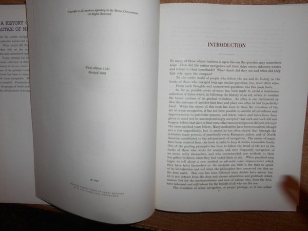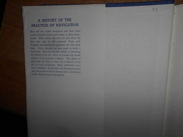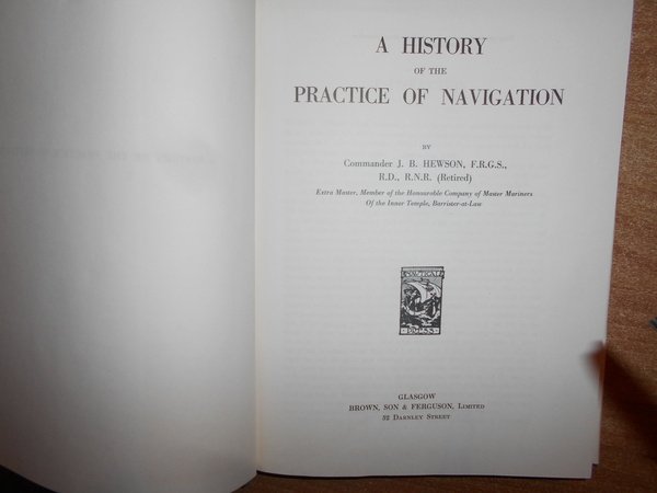 J.B. HEWSON. Glasgow, Brown & Ferguson, 1963. A HISTORY of the PRACTICE of NAVIGATION. In-8°, tela edit. bleu con titoli in oro, sovracopertina. viii, 270 pp. con alcune illustrazioni nel testo. In ottimo stato di conservazione. Uff. C - III - 2