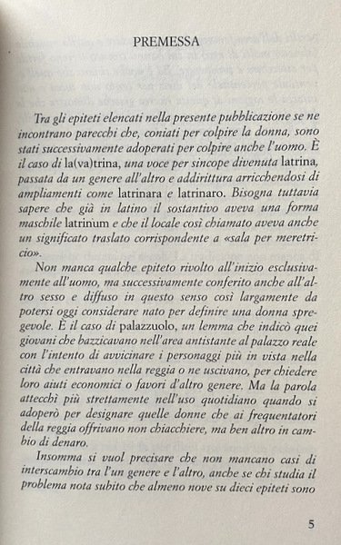 Soggetti: Napoli, Dialettologia, Dialetto napoletano, Cultura partenopea, Parolacce, Epiteti ingiuriosi, Ingiurie, Donne, Misoginia, Uomini, Insulti, Mentalità maschile, Curiosità, Varia, Chicche librarie, Libri Vintage Fuori catalogo, Società napoletana, Lingua, Folklore, Modi di dire, Significato, Proverbi, Miti, Leggende, Fraseologia, Glossario, Malafemmina, Dizionari etimologici, Etimologia, Parole, Studi culturali e sociali, Dizionario italiano napoletano, Dizionari dialettali, Maleducazione, Termini dialettali, Sciupafémmene, Lessico, Voci, Lemmi, Locuzioni locali, Superiorità di genere, Emancipazione femminile, Maschilismo, Latrina, Palazzuolo, Latino, Greco, Uso quotidiano, Papara, Caiorda, Canna de chiaveca, Locena, Loffa, Grimma, Guattara, Gatta cennerennula, Femmenecchia, Fenestrera, Amanti, Tradimenti, Prostitute, Mogli, Mariti, Amoreggiare, Ferdinando Russo, Salvatore Di Giacomo, Drusiana, Disgraziata, Personaggi storici, Pulecenella, Zoccola, Cummara, Cuoppo allesse, Bibliografia, Cortese, Basile, Bovio, Murolo, Sciupafemmine, Malacreanza, Naples, Dialectology, Neapolitan dialect, Neapolitan culture, Swear words, Insulting epithets, Insults, Women, Misogyny, Men, Insults, Male mentality, Curiosity, Various, Book goodies, Out of print books, Neapolitan society, Language, Idioms, Meaning, Proverbs, Myths, Legends, Phraseology, Glossary, Etymological Dictionaries, Etymology, Words, Cultural and Social Studies, Neapolitan Italian Dictionary, Dialect Dictionaries, Rudeness, Dialectal Terms, Lexicon, Voices, Lemmas, Local Phrases, Gender Superiority, Emancipation Feminine, Male, Latrine, Latin, Greek, Everyday use, Lovers, Betrayals, Prostitutes, Wives, Husbands, Flirt, Wretched, Historical characters, Pulcinella, Slut, Bibliography, Wifemmine, Slang