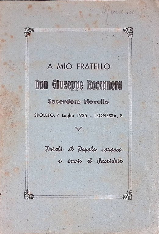 A mio fratello Don Giuseppe Boccanera Sacerdote novello. Spoleto 7 luglio 1935 - Leonessa 8