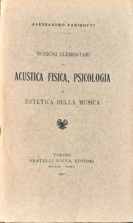 A. Parisotti Nozioni elementari di Acustica Fisica, Pscicologia Torino Bocca 1911