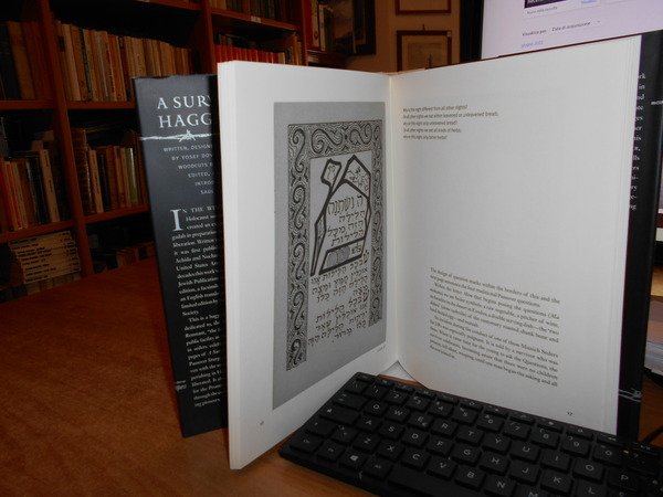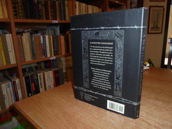 by SAUL TOUSTER. Philadelphia, Jewish Publication Society, 2000. A Survivors' HAGGADAH. In-8° grande, m. tela edit. con titolo al dorso e sovracopertina. xxxii, 91 pp. con numerose tavole f.t. In ottimo stato di conservazione. Uff. stanzetta mob. sinistra II - 3 carc.