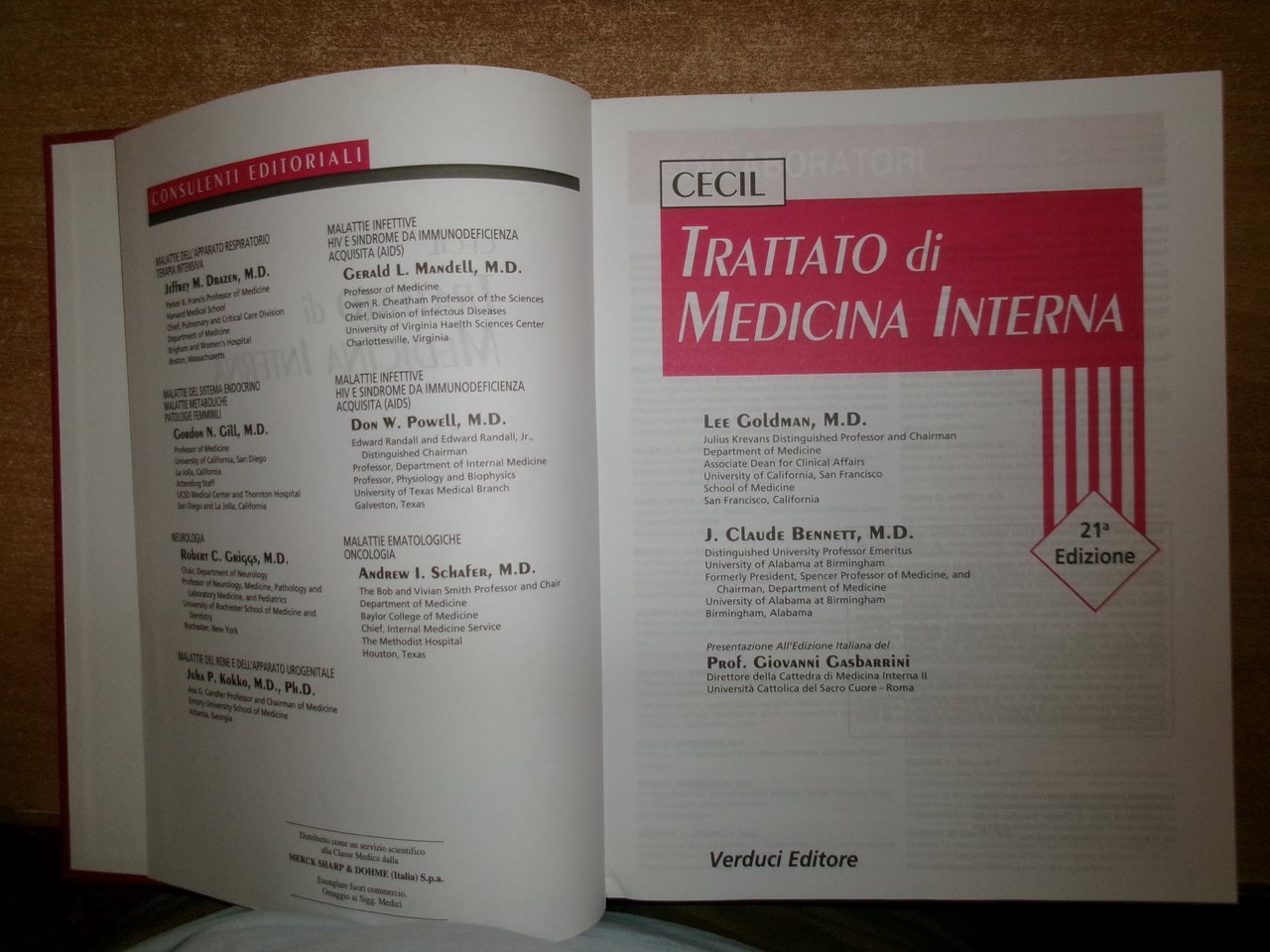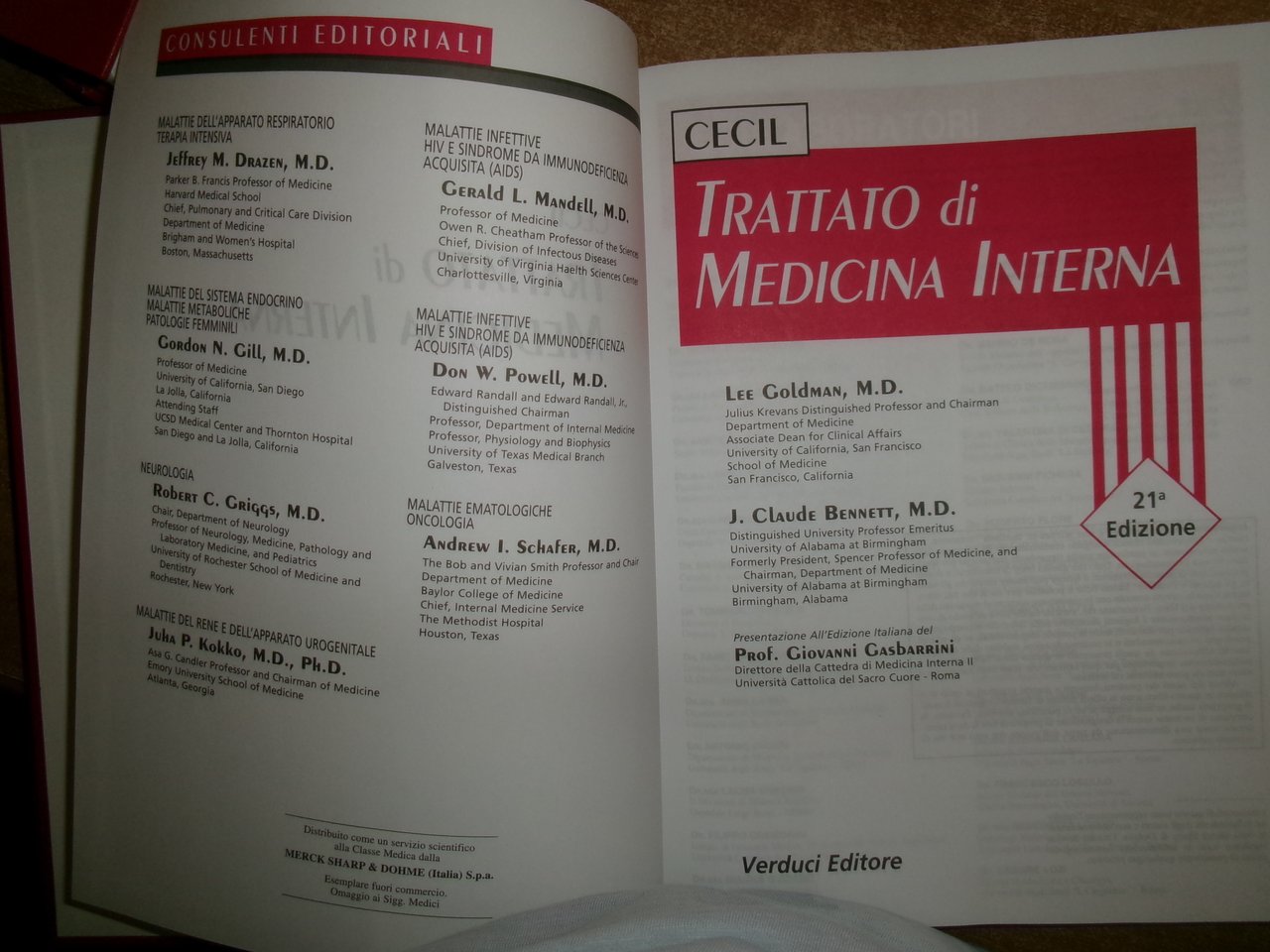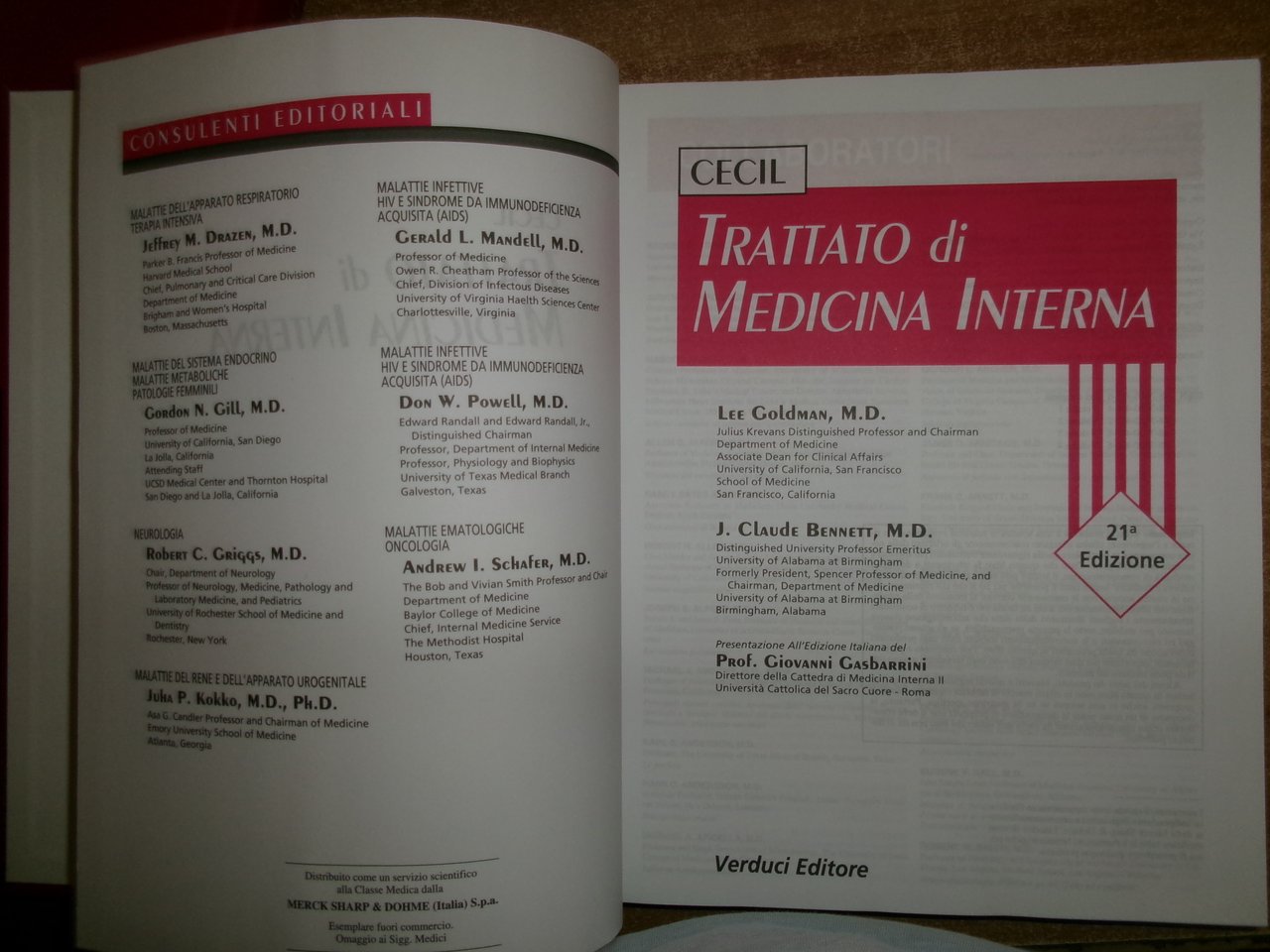 AA. VV. CECIL Trattato di Medicina Interna - GOLDMAN BENNETT. 21a Edizione. Roma, Verducci Editore, 2001. 4 volumi in-4°, similpelle e oro. xxxvi, xxxii, xviii, xvi, per complessive 2587 pp. con numerose illustrazioni in nero n.t. e a colori in tavole fuori testo . Ottimo esemplare. Uff. stanz. TV mob fronte nostro.