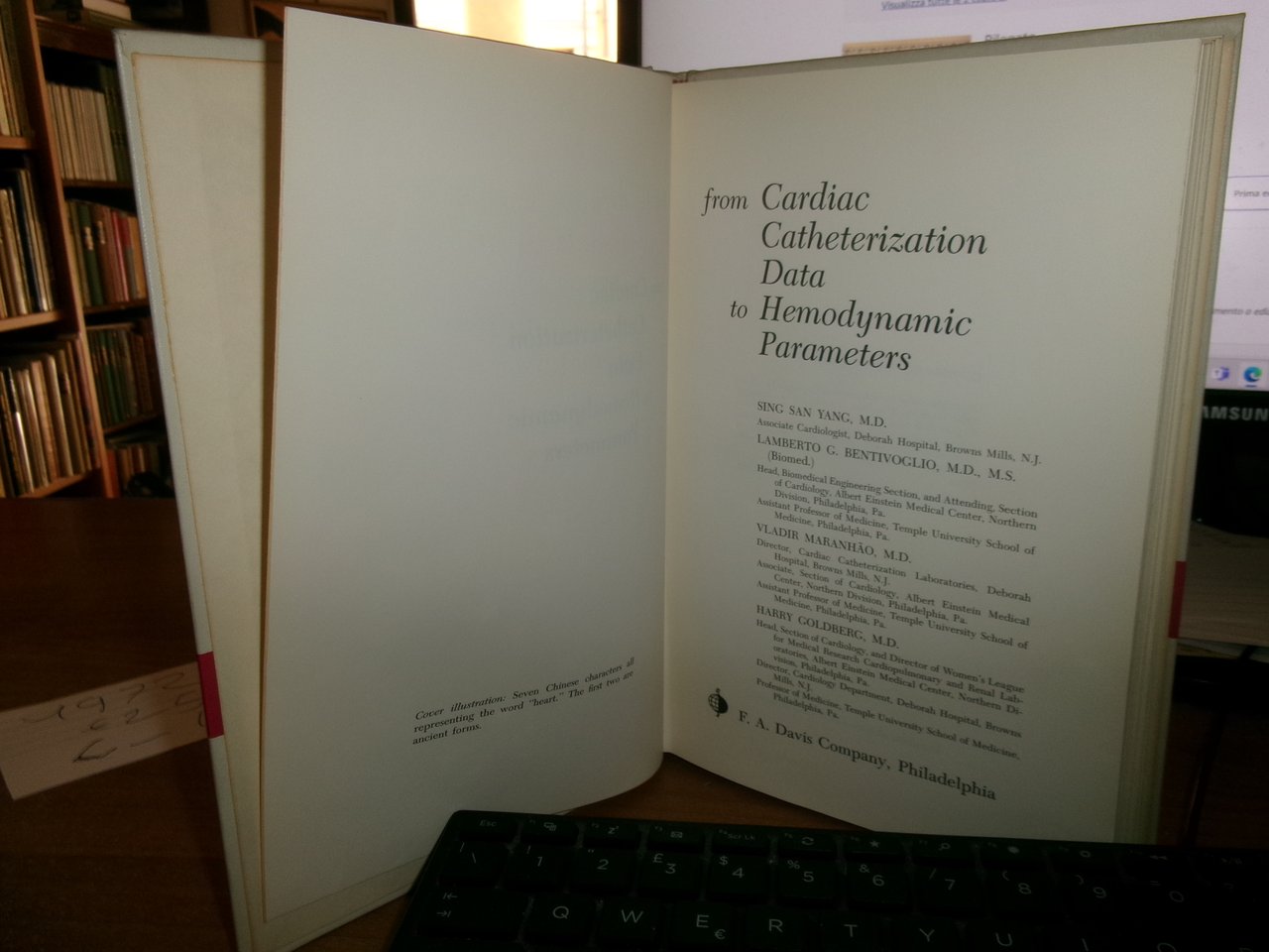 YANG - BENTIVOGLIO - MARANHAO - GOLDBERG. Philadelphia, Davis Company, 1972. From cardiac catheterization data to hemodynamic parameters. In-8°, tela edit. x, 307 pp. con numerose figure in nero n.t. Ottimo stato con testo in inglese. Uff. C - I - 3