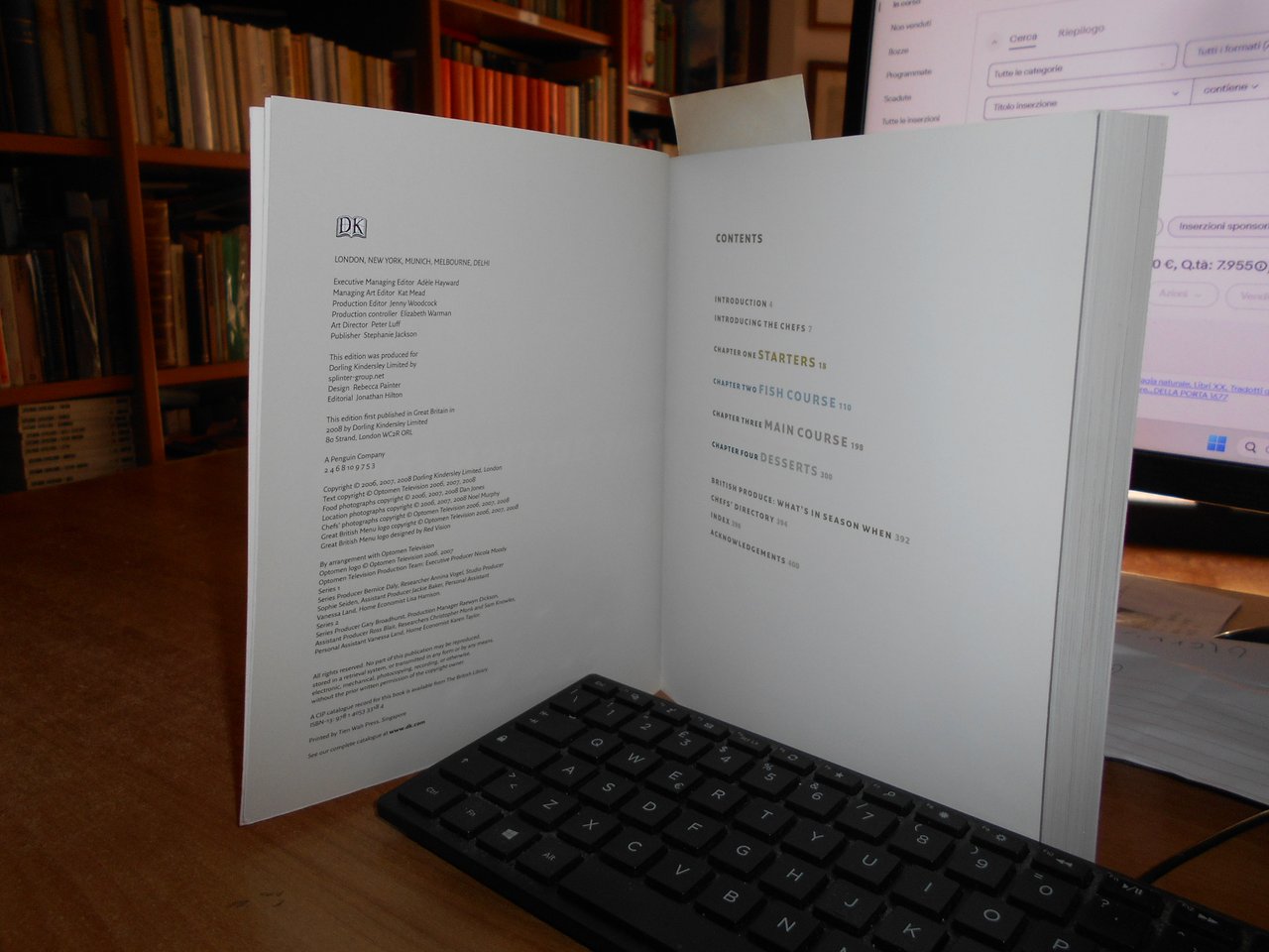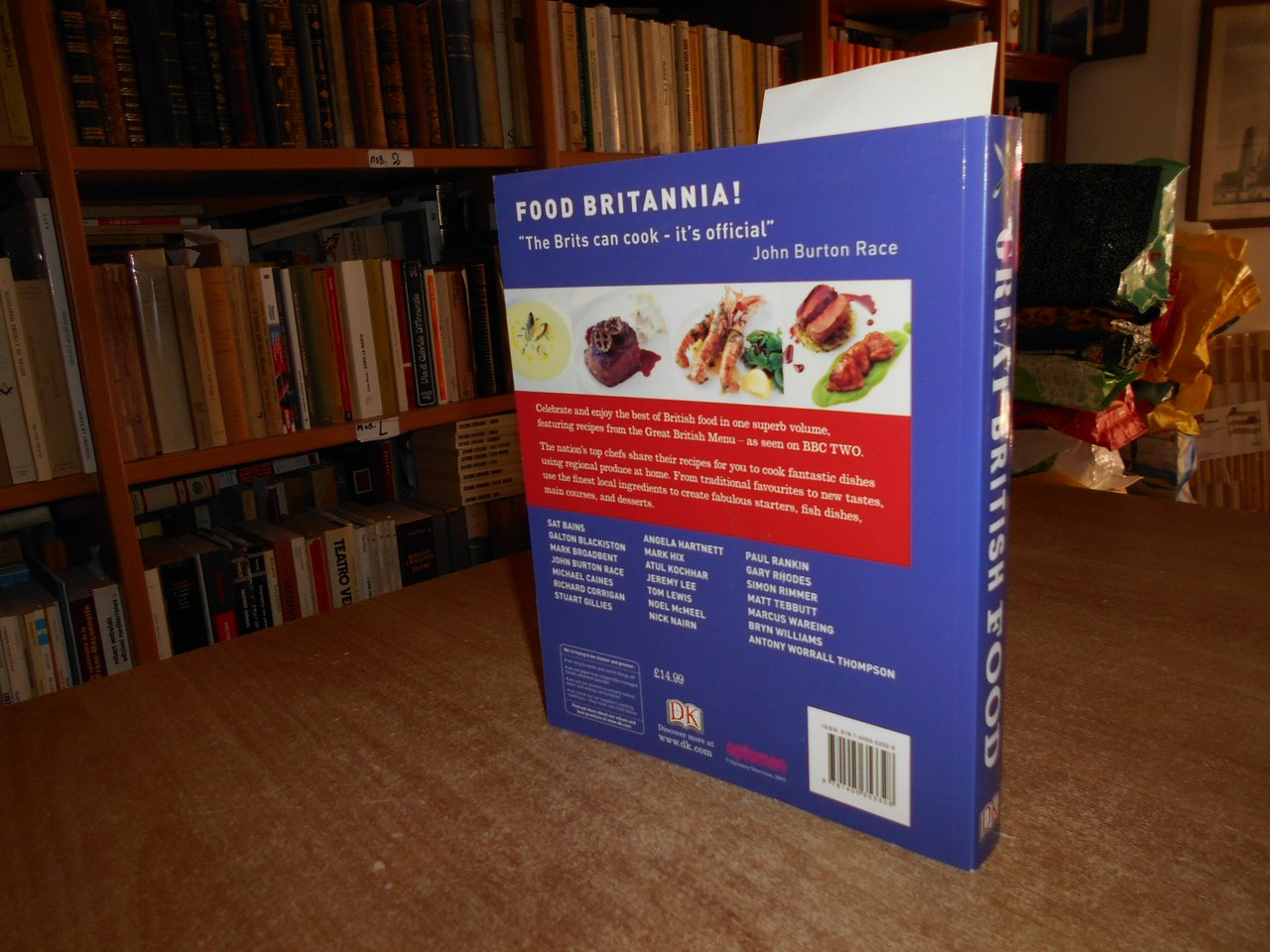 AA.VV. Michael Caines/Richard Corrigan/Angela Hartnett. London, New York (Singapore), Pinguin Editore, 2008. Great British Food. Over 150 superb Dishes from BBC two's great British menu. In-8°, br. ill. a col. 399 pp. con numerose tavole a colori nel testo. Ricettario gastronomico con testo in inglese. Come nuovo. Uff. stanzetta a sinistra III - 1 carc.
