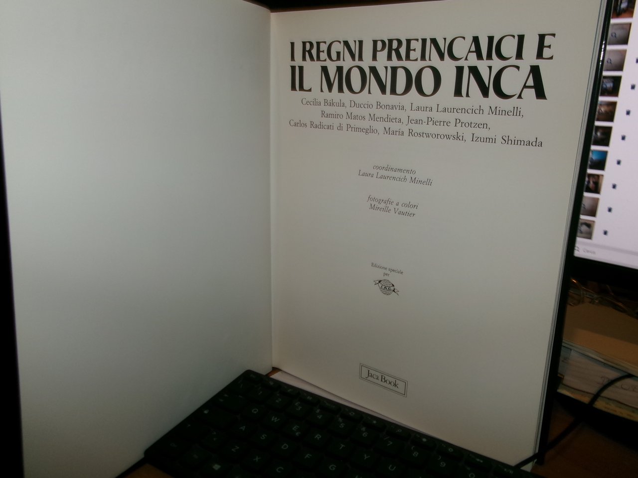 AA. VV. Milano, Edizione speciale per Jaca Book, 1992. I REGNI PREINCAICI e il MONDO INCA. Coordinamento Laura Laurencich Minelli. In-4°, tela edit. bleu con sovracopertina ill. a col. 240 pp. con numerose illustrazioni a colori e in bianco e nero n.t. Come nuovo. Uff. C - I - 3 - 2