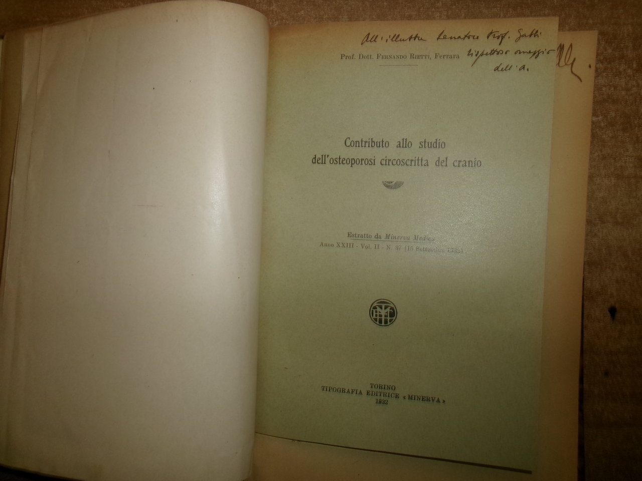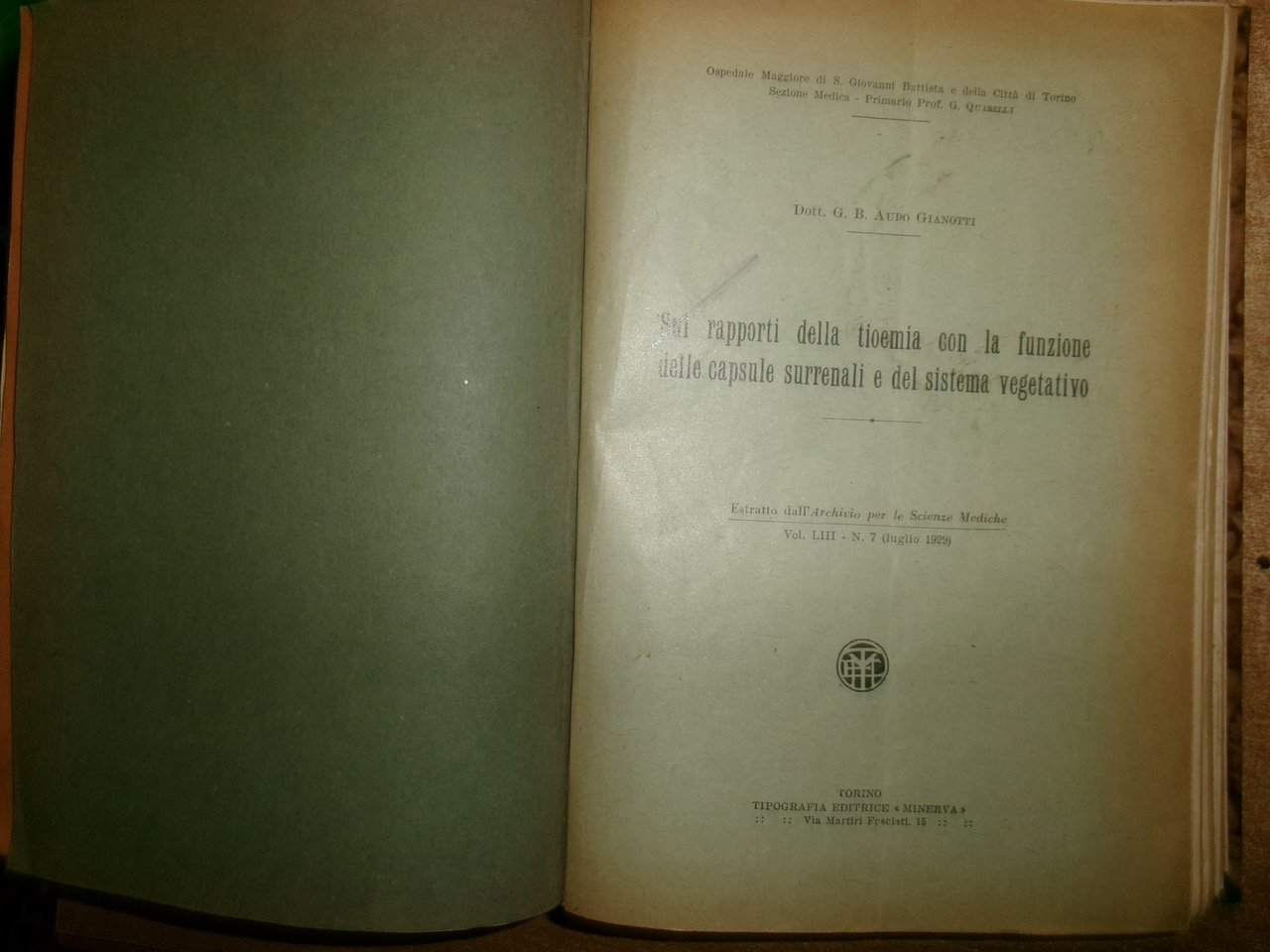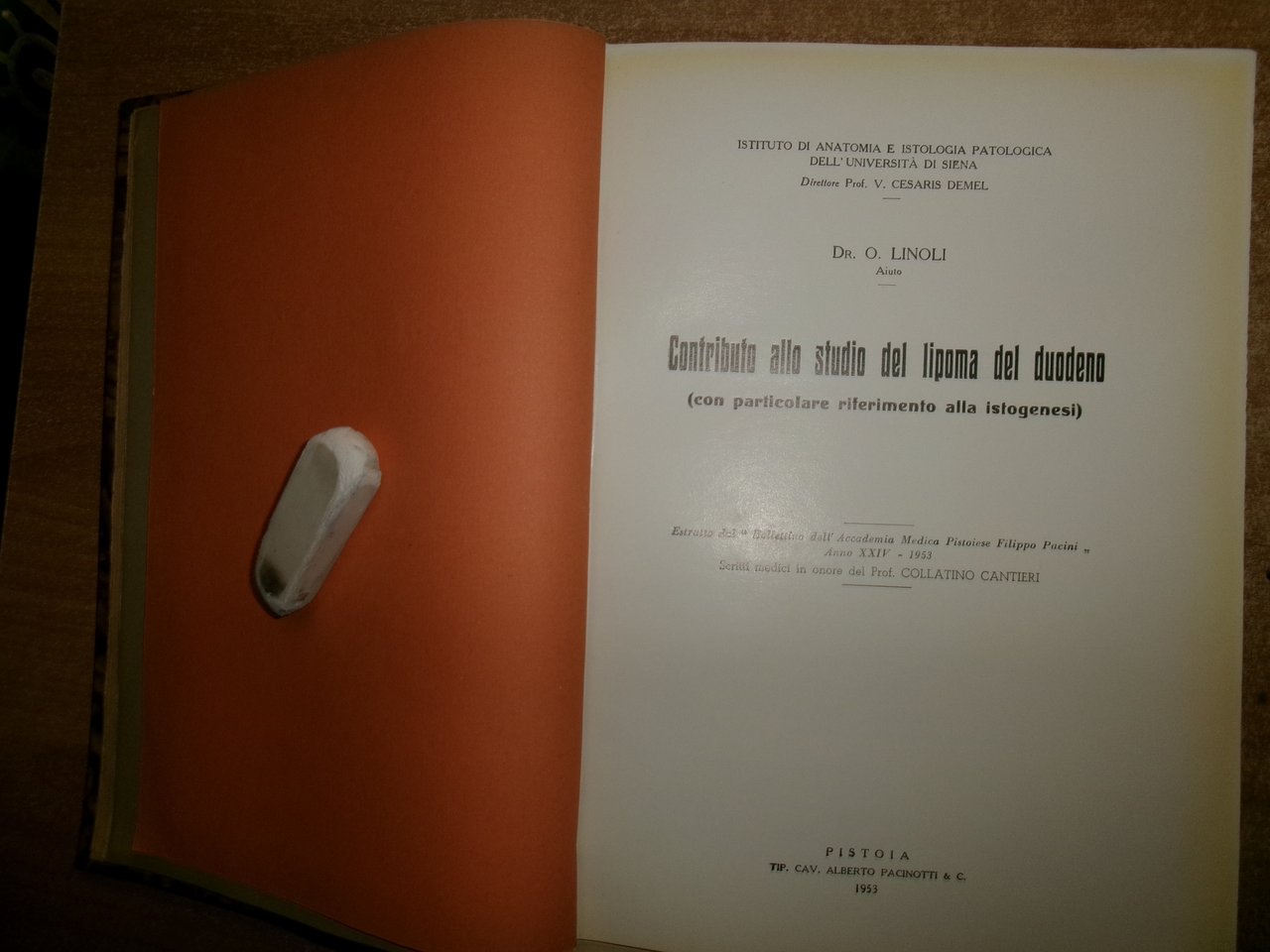 AA.VV. MISCELLANEA di numerosi estratti/opuscoli riguardanti i tumori. 1930/1950.Raccolta di innumerevoli estratti/opuscoli riguardanti i tumori. 2 volumi in-8°, m-tela con titolo in oro al dorso con numerose illustrazioni anche a colori. Ottimo stato con testi la maggior parte in italiano ma anche in francese e tedesco. Ben conservati con dediche degli Autori firmate dedicate al Prof. Campanacci. Uff. salon. sporta 9