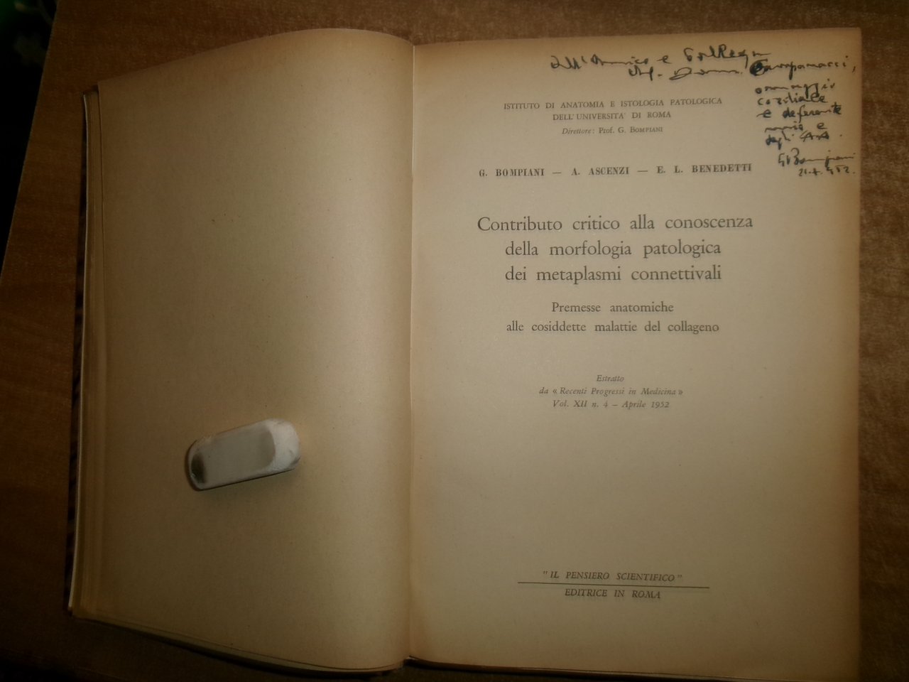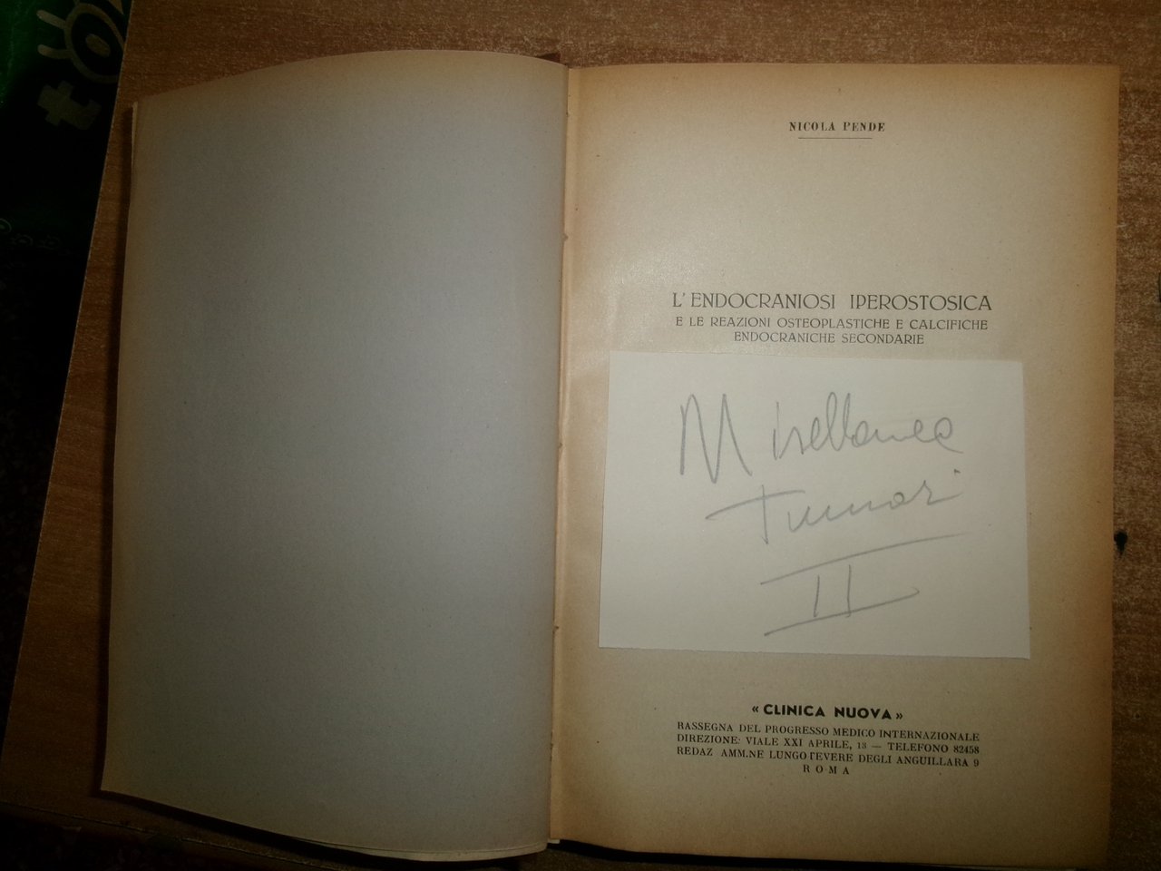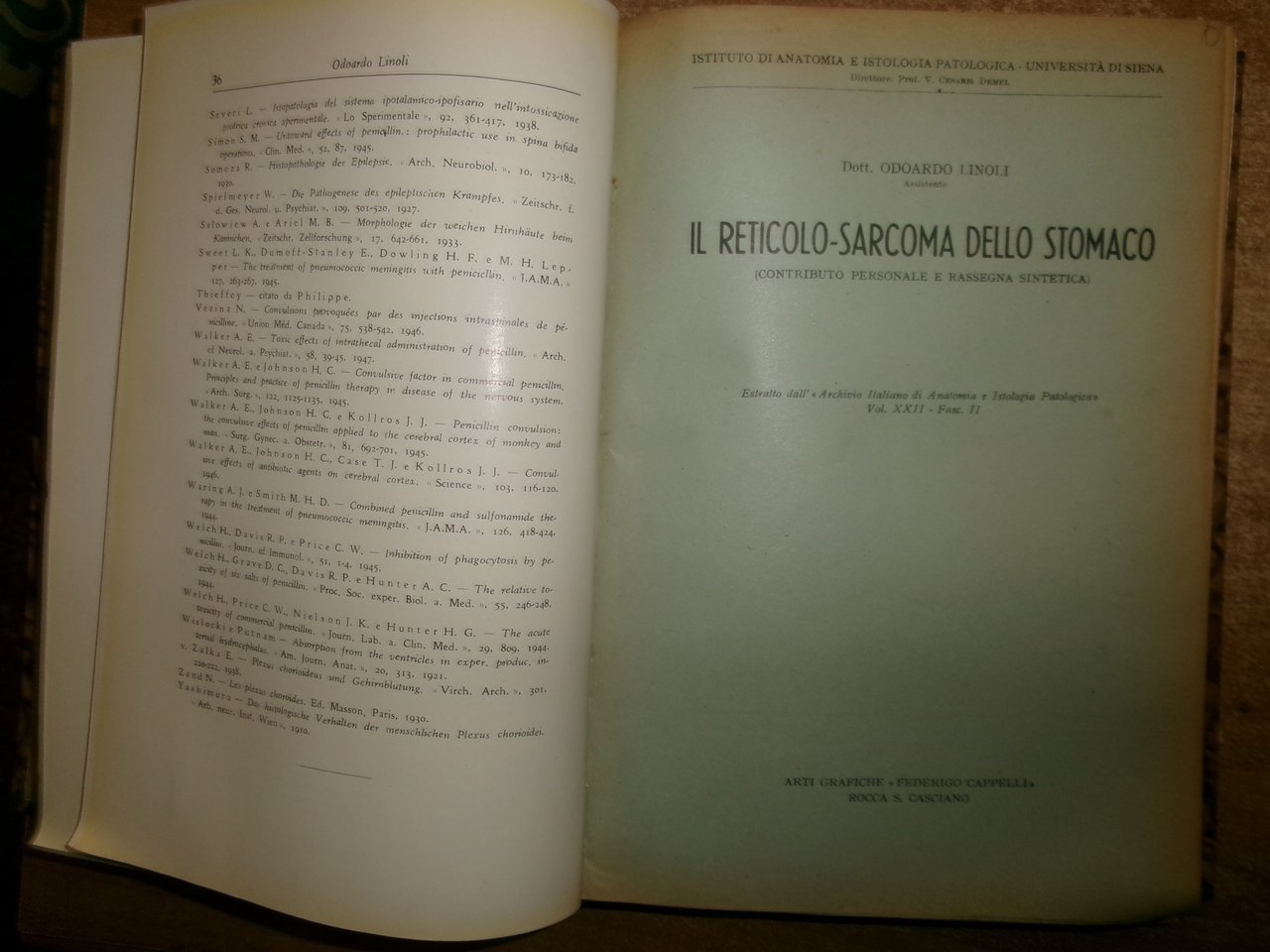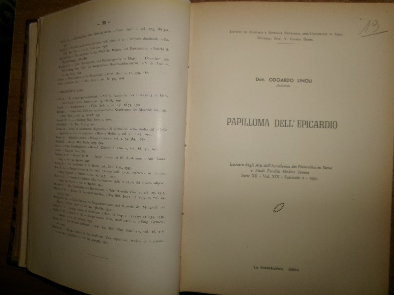 AA.VV. MISCELLANEA di numerosi estratti/opuscoli riguardanti i tumori. 1930/1950.Raccolta di innumerevoli estratti/opuscoli riguardanti i tumori. 2 volumi in-8°, m-tela con titolo in oro al dorso con numerose illustrazioni anche a colori. Ottimo stato con testi la maggior parte in italiano ma anche in francese e tedesco. Ben conservati con dediche degli Autori firmate dedicate al Prof. Campanacci. Uff. salon. sporta 9