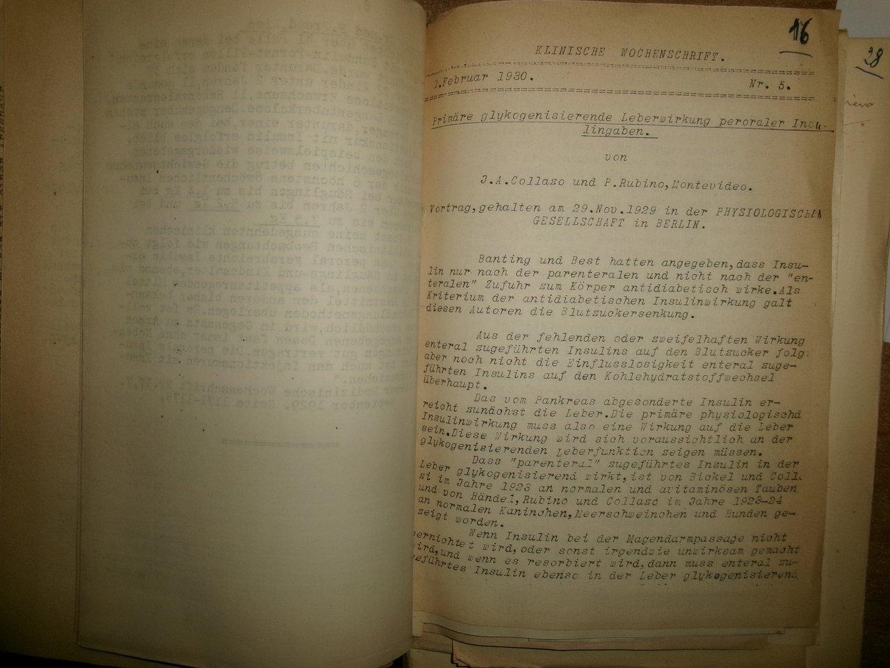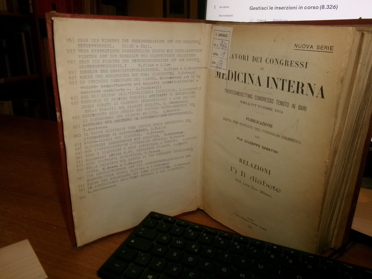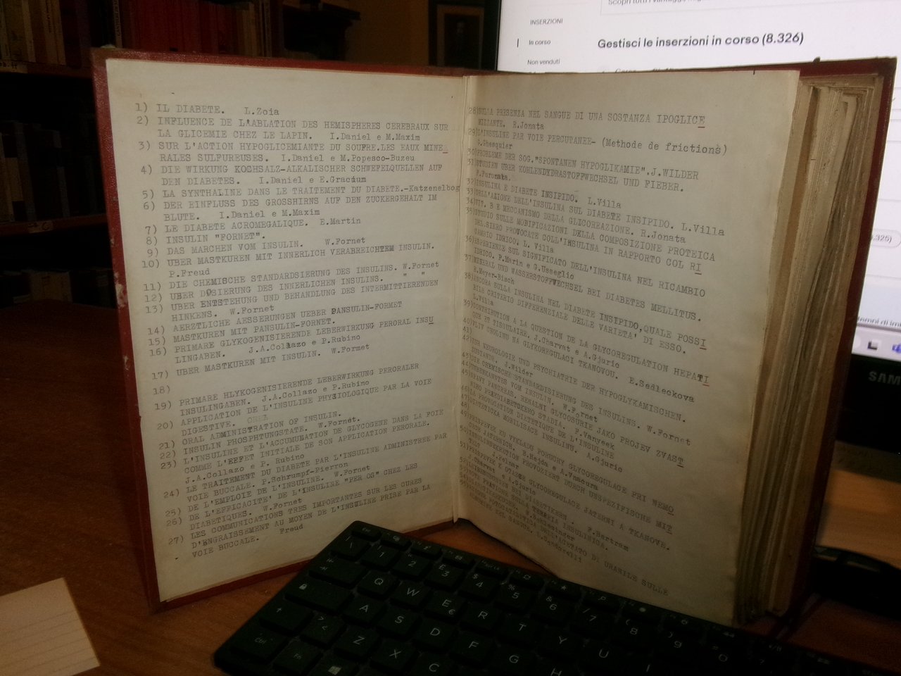 AA. VV. Miscellanea di numerosi estratti/opuscoli riguardanti il Diabete/Insulina 1931. In-8°, m. tela con titolo in oro al dorso. Ottimo stato con testo in italiano la maggior parte, tedesco/inglese/ceco/francese. Uff. salon. sporta 5