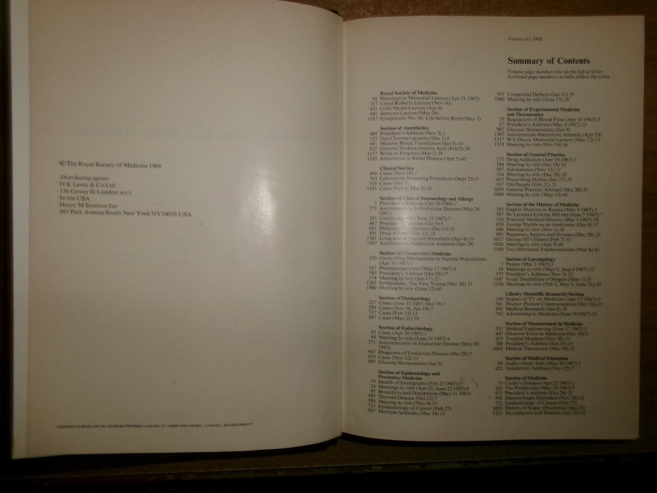 AA. VV. Proceedings of the ROYAL SOCIETY of MEDICINE 1968