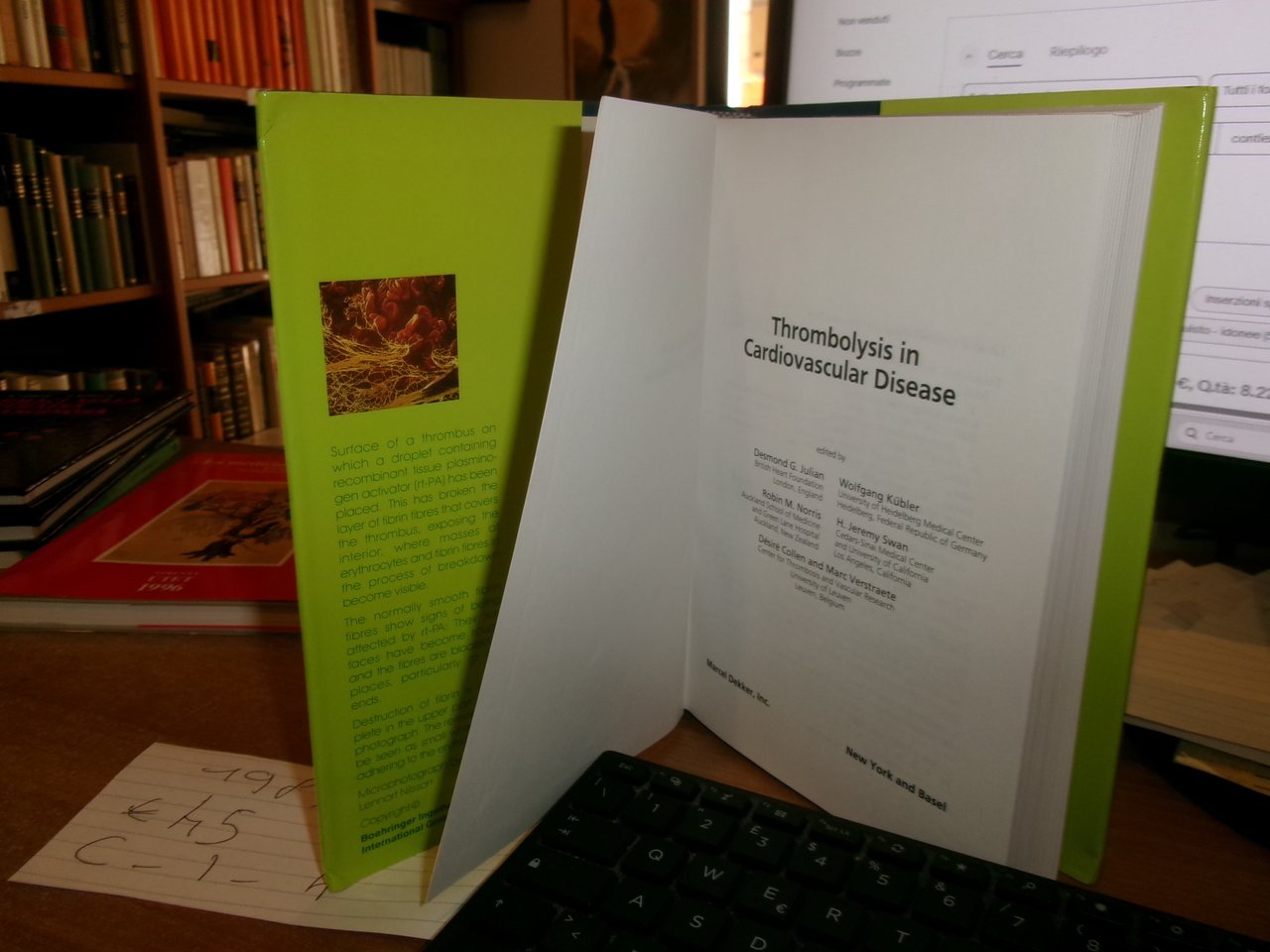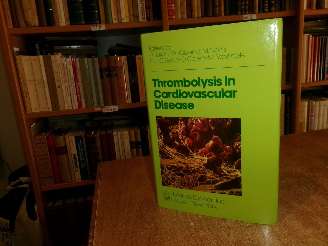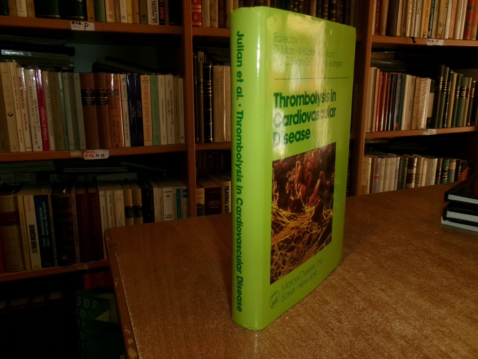 D. Julian - W. Kubler - R.M. Norris - H.J.C. Swan - D. Collen - M. Verstraete. New York, Marcel Dekker, 1989. Thrombolysis in Cardiovascular Disease First Edition Edición. In-8°, tela edit. bleu con titoli in oro e sovracopertina. xii, 460 pp. con alcune illustrazioni in nero. Come nuovo con testo in inglese. Uff. C - I - 4