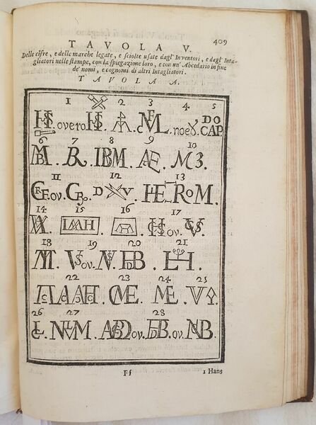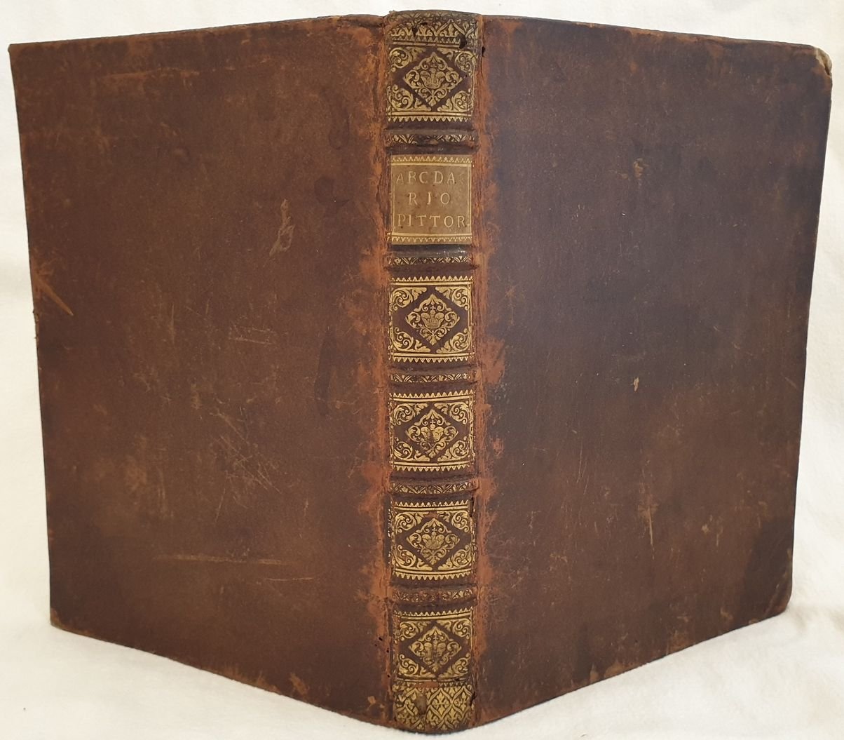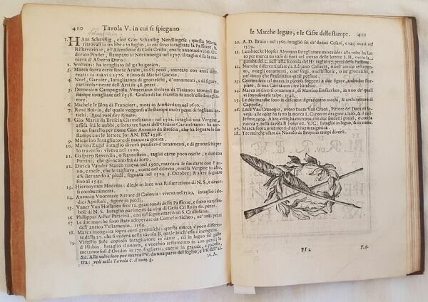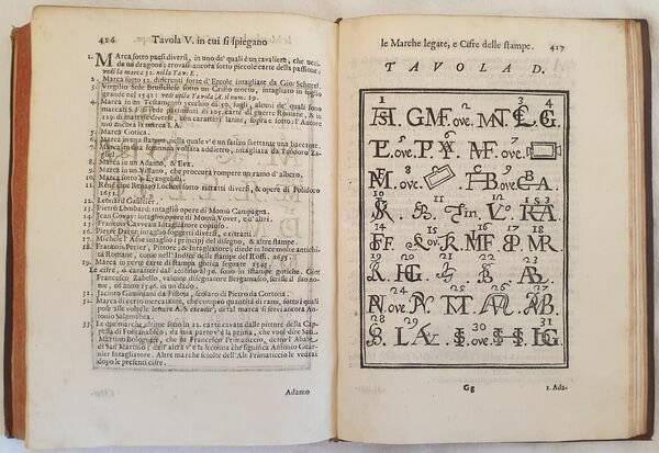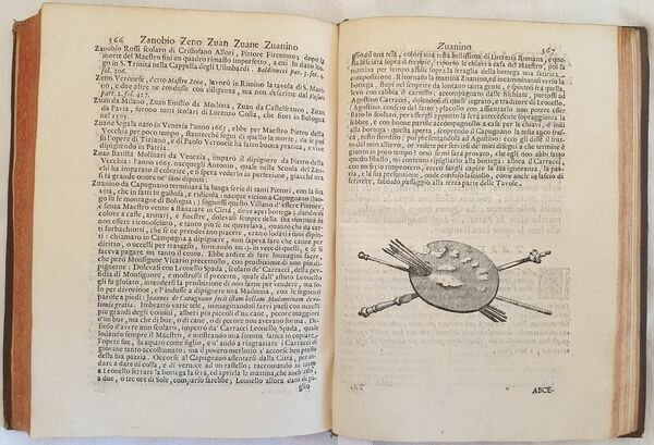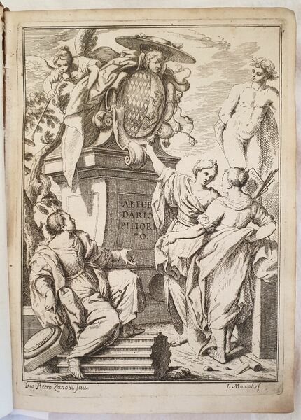 Prima edizione del 1704 di questo importante dizionario di arte scritto dallo storico dell’arte e bibliografo bolognese Pellegrino Antonio Orlandi (1660-1727). L’opera, considerata «la più completa fonte di informazioni sugli artisti durante il XVIII secolo». (cfr. Dictionary of Art Historians, Lanitra Walker) è divisa in tre parti. Gli artisti vengono riportati in ordine alfabetico a partire dal nome. Nella prima parte gli antichissimi, la seconda contiene gli antichi, moderni e viventi, la terza i soprannomi e cognomi e un ricco apparato bibliografico (libri sull’arte, prospettiva, architettura, disegno, cifre, marche, incisori ecc…) "Quest 'opera fu tratta da tutte le opere biografiche con molta cura, e divenne la più comoda fonte di simili notizie" (Cicognara). Frontespizio figurato inciso da Ludovico Mattioli (1662-1747) su disegno di Giampietro Zanotti (1674-1765). Belle lettere iniziali decorate. Cinque tavole incise a piena pagina che riportano cifre, e marche usate dagli inventori e intagliatori. Belle vignette. In ottime condizioni. Copertina in piena pelle coeva con titolo e decorazioni in oro al dorso in ottime condizioni con lievi usure ai margini e dorso. Legatura in buone condizioni. Pagine in ottime condizioni con rare fioriture. In 8. Cm 23,5x18. Pp. (2)+436. Contents: [(2)+436]. In 8 (9.25 x 7 in; 235 x 180 mm) Weight Kg. 0,822. Five full-page engraved plates with marks, numbers letters used by inventors and engravers. Figurated title page engraved by Ludovico Mattioli (1662-1747) invented by Giampietro Zanotti (1674-1765). Condition of contents: Very good conditions. Occasional foxings. Condition of binding: Leather coeval cover with golden title and decorations in very good conditions lightly damaged in the extremities. First edition of the important reference work of art written by the historian of arrt and bibliographer from Bologna Pellegrino Antonio Orlandi (1660-1727) which contains around four thousand biographies of painters, sculptors and architects. The work, considered «la più completa fonte di informazioni sugli artisti durante il XVIII secolo». (cfr. Dictionary of Art Historians, Lanitra Walker) is divided into three parts. The artists are divided in an alphabetical order based on their name. In the first part the ancient, the second part the ancient, modern and living authors, the third part the surname and nicknames and a rich bibliography (books about art, perspective, architecture, drawing, numbers, marks, engravers ecc…) "Quest 'opera fu tratta da tutte le opere biografiche con molta cura, e divenne la più comoda fonte di simili notizie" (Cicognara).