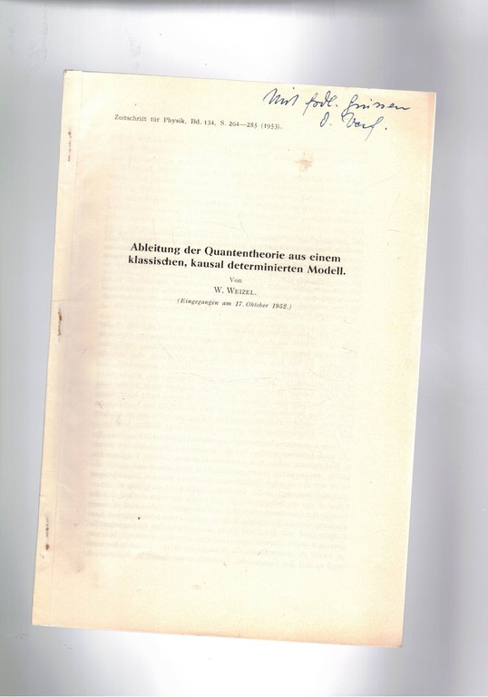 Ableitung der Quantentheorie aus einem Klassische, Kausal determinierten Modell. Estratto.