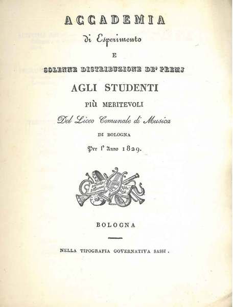 Accademia di esperimento e solenne distribuzione dei premi agli studenti più meritevoli del Liceo Comunale di Musica di Bologna per il 1829