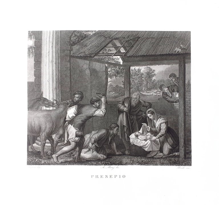 Acquaforte originale '800 " Presepio " - Tiziano dipinse - Bridi incise