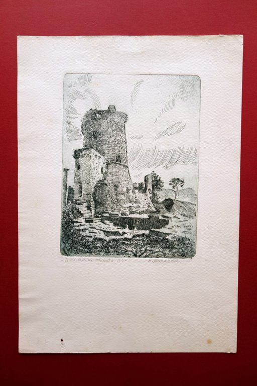 Acquaforte Originale Torre Antica Gaiato Modena A. Baracchi Anni '30